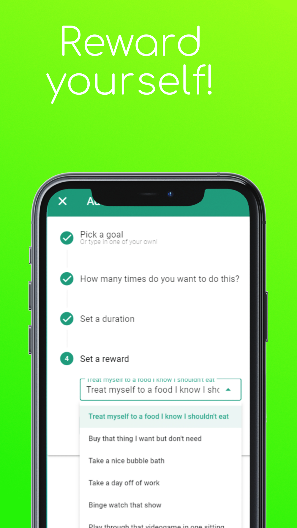 - Set and claim personal rewards when you reach 100% completion on a goal: anything from treating yourself to a dessert to buying that thing you want, with customizable options available