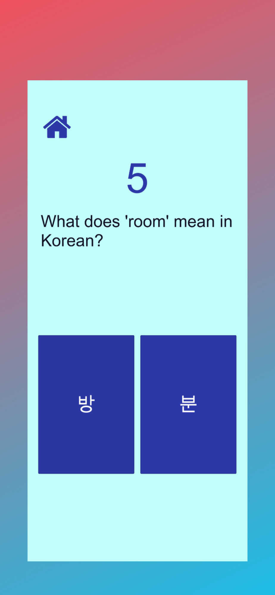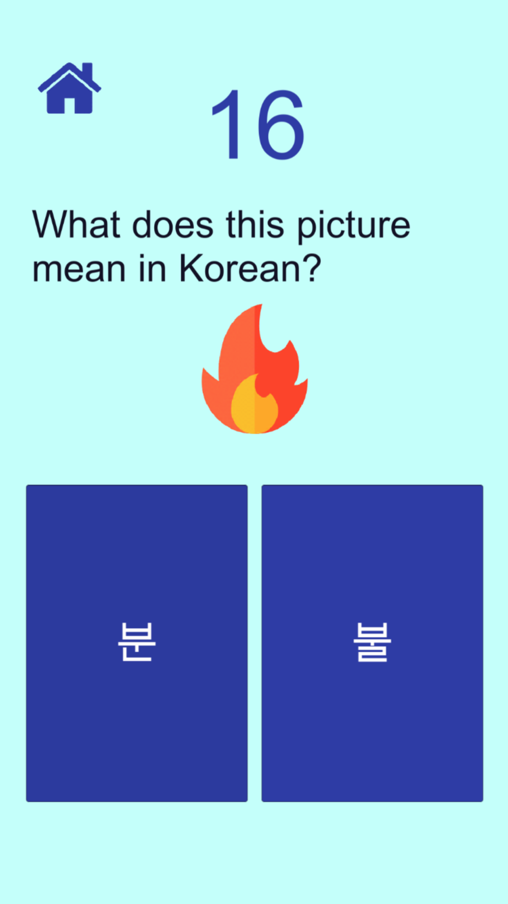 100 Korean Words is a trivia game that will help you learn 100 basic korean words. It is fun to play because every time you get a wrong answer you have to start from the beginning. It is hard not to give up and only a few can actually get to the end!