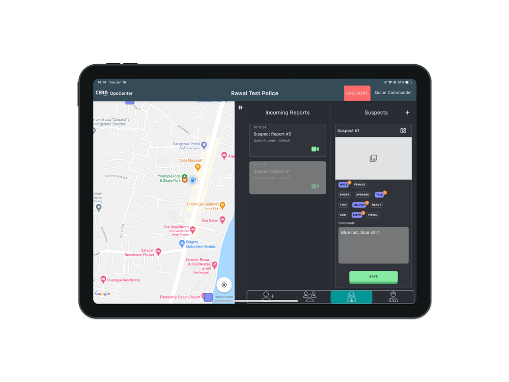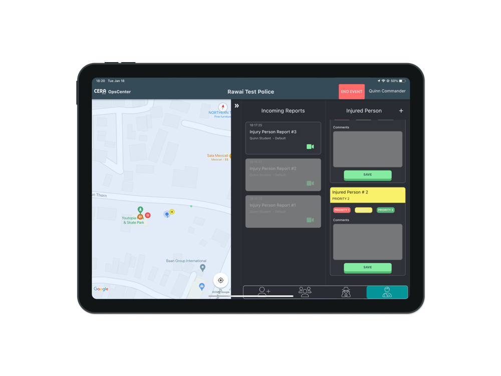 Active threat events require quick and organized responses. CERA connects police and medical responders with teachers, students, and other citizens, in real-time, automating key tasks and providing police and first responders with a live overview of the entire incident.