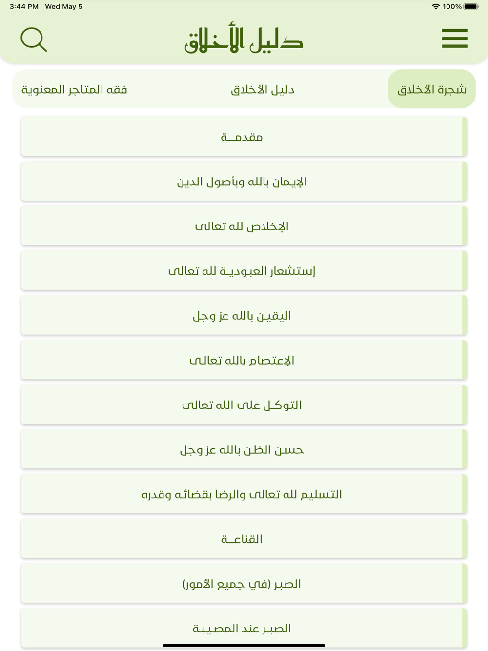 موسوعة مفصلة تتضمن الأخلاق والفضائل التي يدعو لها الإسلام (دين الله)، وبعض هذه الأخلاق واجبة ومفروضة، وبعضها مستحب ومندوب.