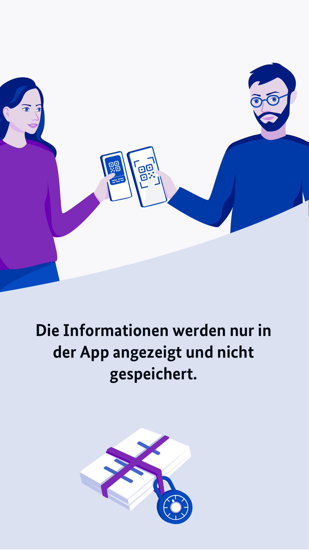 • Datensparsamkeit: Nach der Prüfung des QR-Codes werden nur der Status des Zertifikats, der Name und das Geburtsdatum angezeigt.
