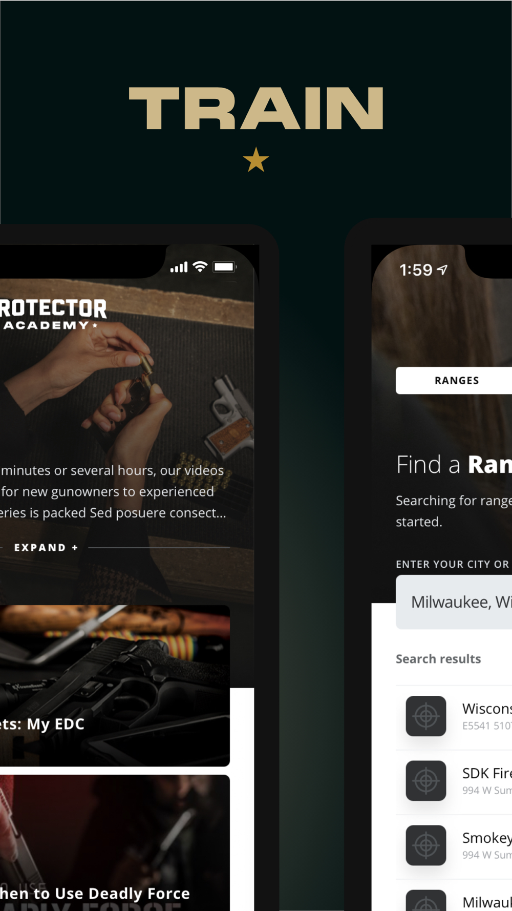 Train how you want, when you want, and where you want. Check in at local ranges and receive exclusive coupons. Continue your firearms training journey no matter your skill level. Track your progress by earning badges and achievements by completing interactive courses and watching training video series. Take ownership of your safety and the safety of the people you love.