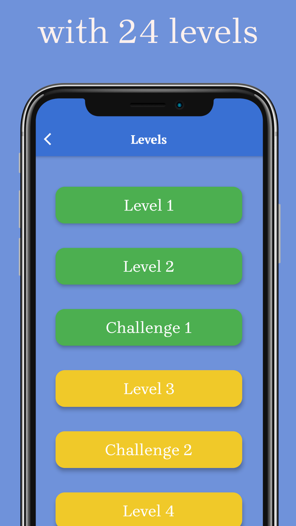 - in total 24 levels for learning and training and 20 challenges for testing: learn and train first with ease and then challenge yourself with pressure.