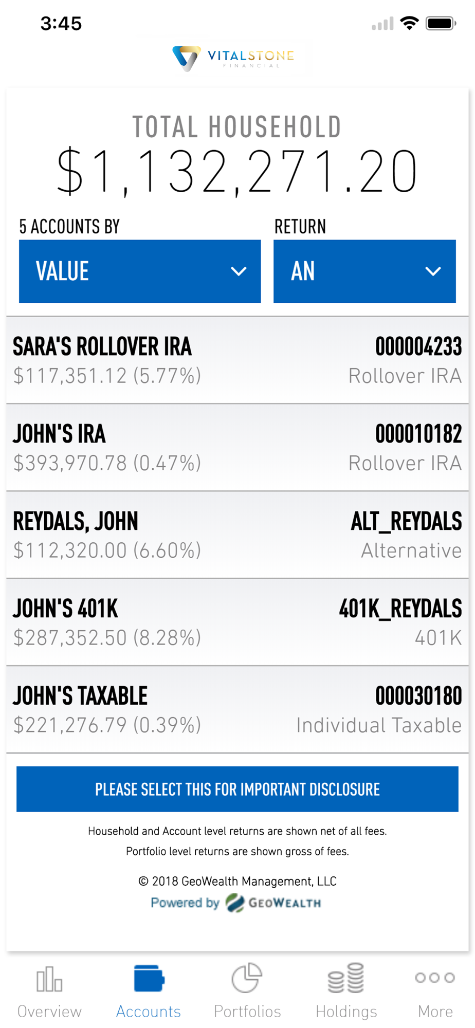 • See up-to-date performance returns and holdings on the household, account and portfolio levels