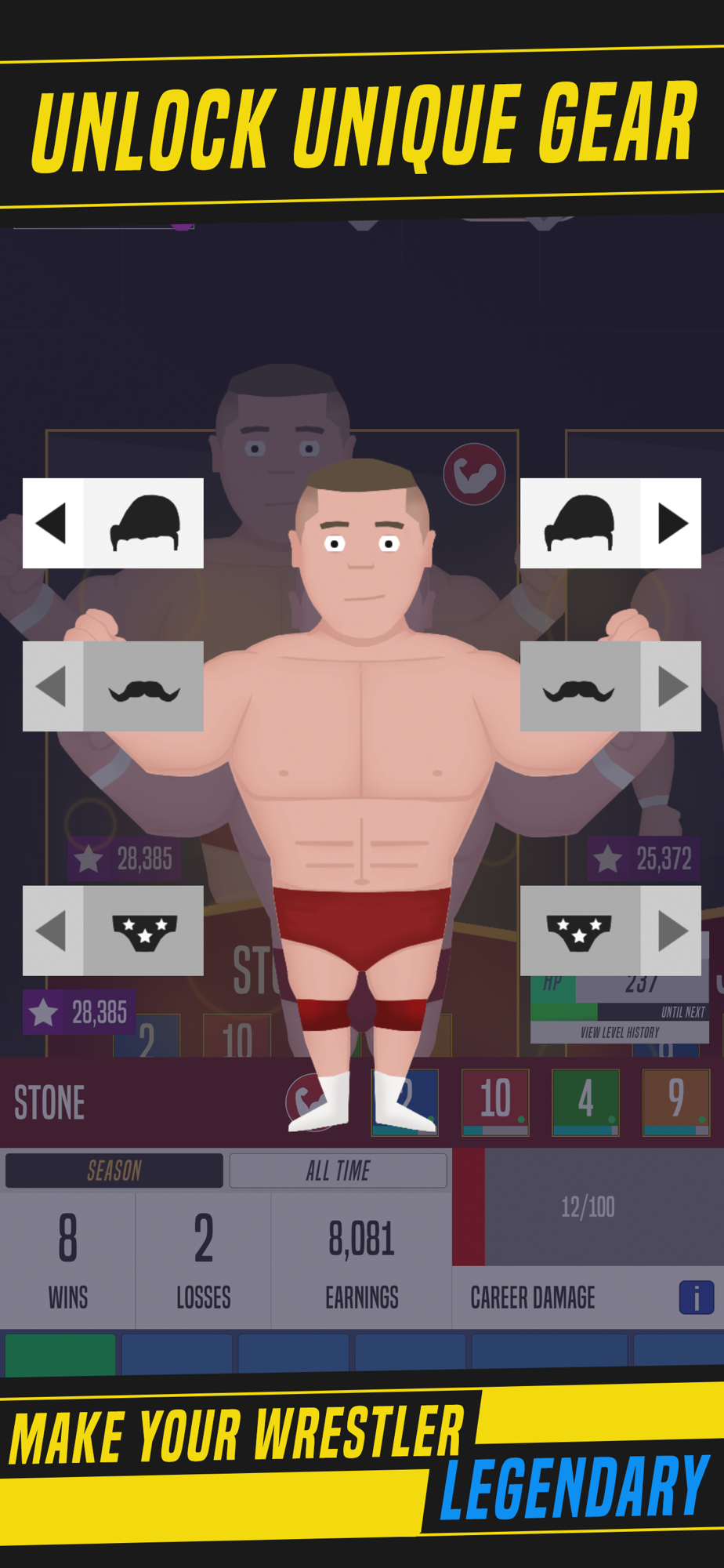 Wrestle Champs is a unique community driven multiplayer game. Hire wrestlers, enter them into wrestling shows that happen at real times during the day and watch as they compete against other wrestlers from players all over the world!