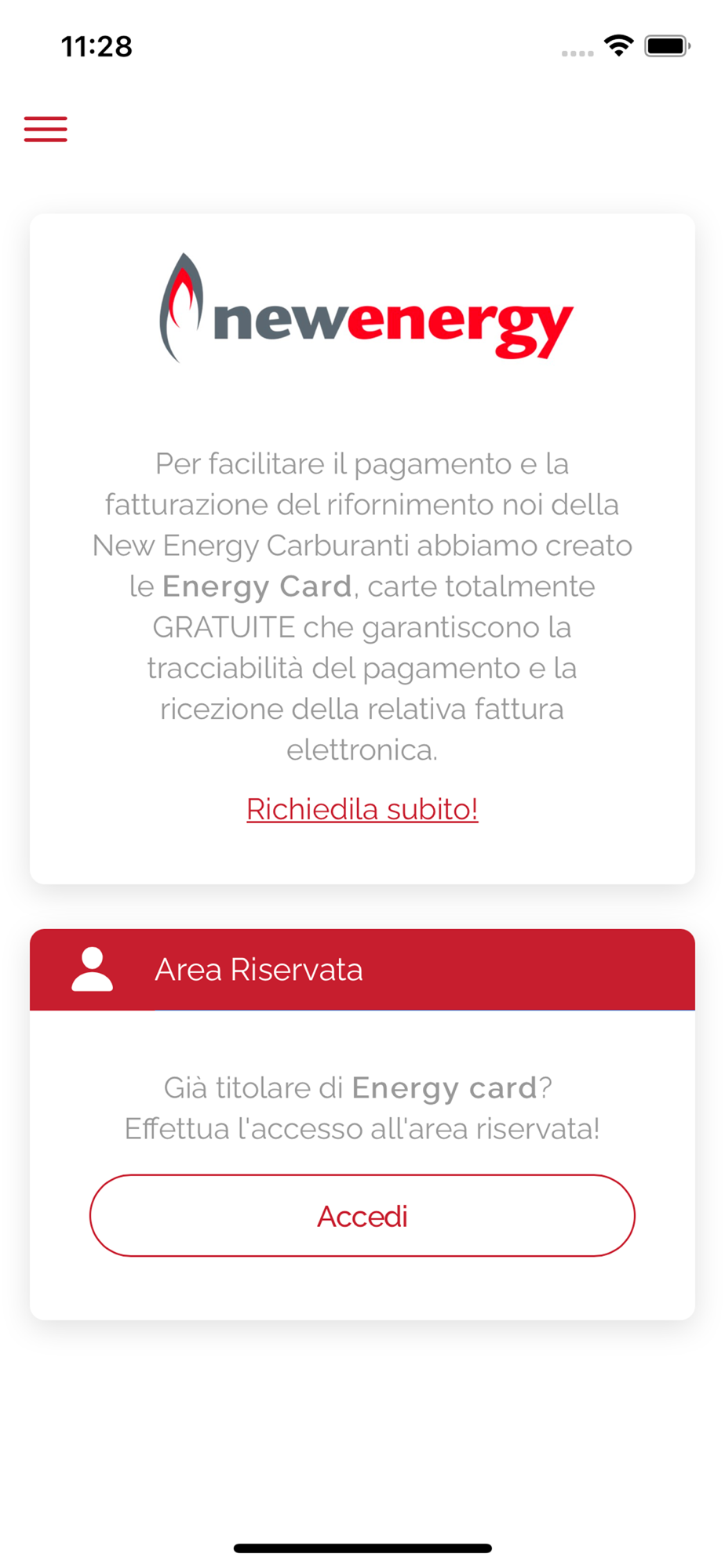 Per facilitare il pagamento e la fatturazione del rifornimento noi della New Energy Carburanti abbiamo creato le Energy Card, carte totalmente GRATUITE che garantiscono la tracciabilità del pagamento e la ricezione della relativa fattura elettronica. Inoltre sia per privati che per aziende l'EnergyCard consente di avere ulteriori sconti sul METANO.