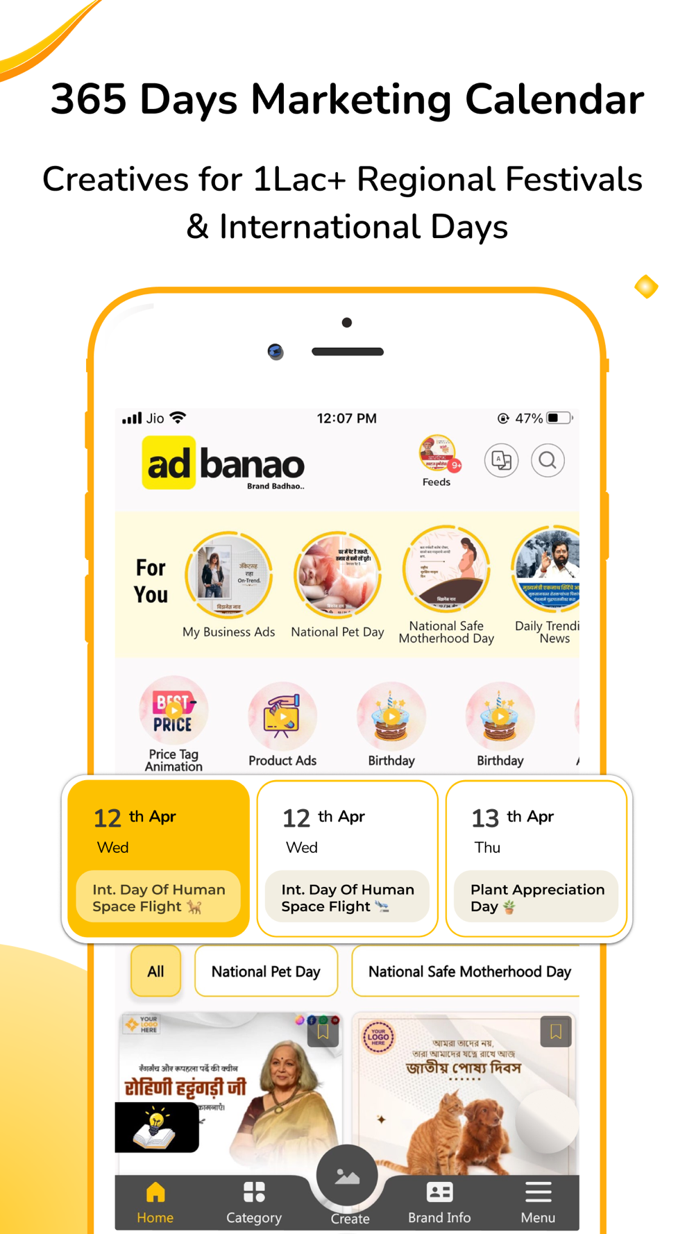 Create Festival, Days, Trending Events, And Even Your Business Advertise Posters, Banners, Creatives, and Videos For Your Brand In Single Click.