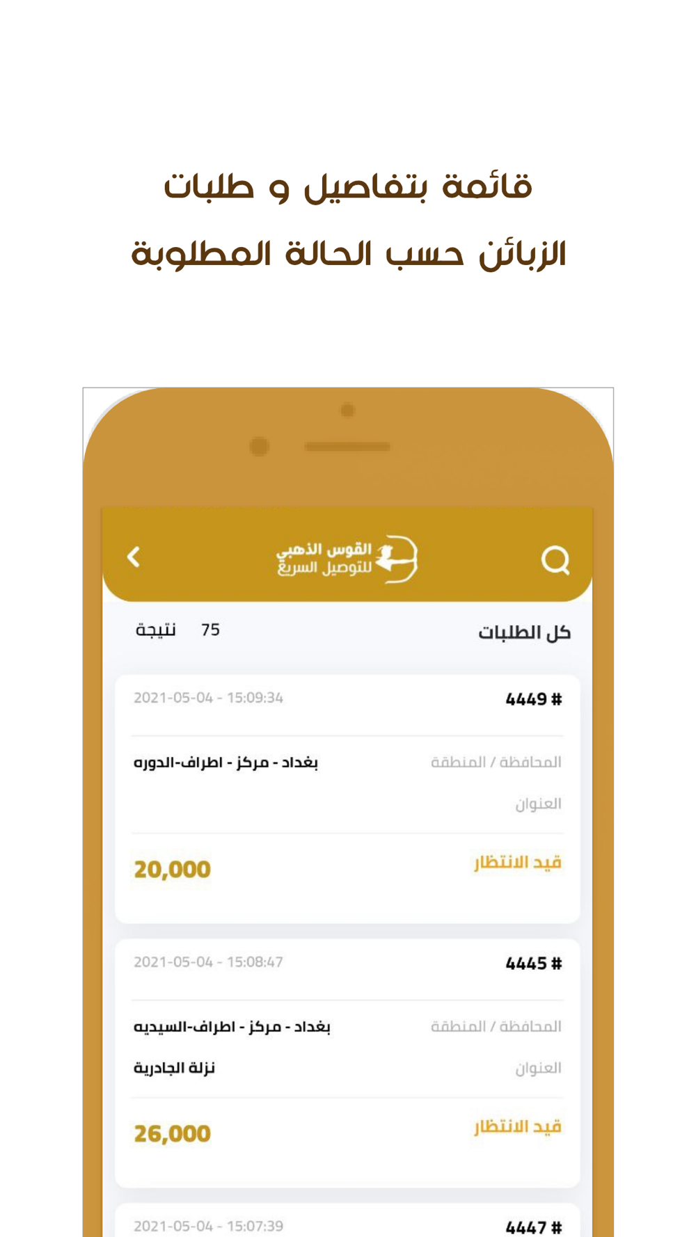 متابعة جميع طلبات الزبائن