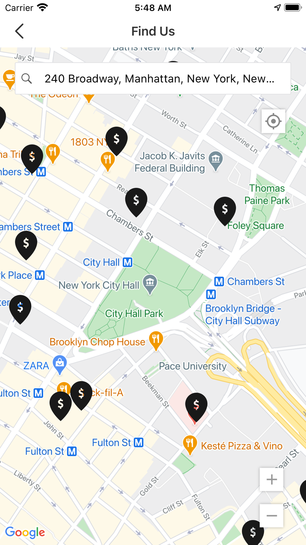 The My Location control can restrict transactions to merchants located within a certain range of your location (using your phone’s GPS); transactions requested outside of the specified range can be declined. The My Region control uses city, state, country or zip code on an expandable interactive map; transactions requested by merchants outside of a specific region can be declined.