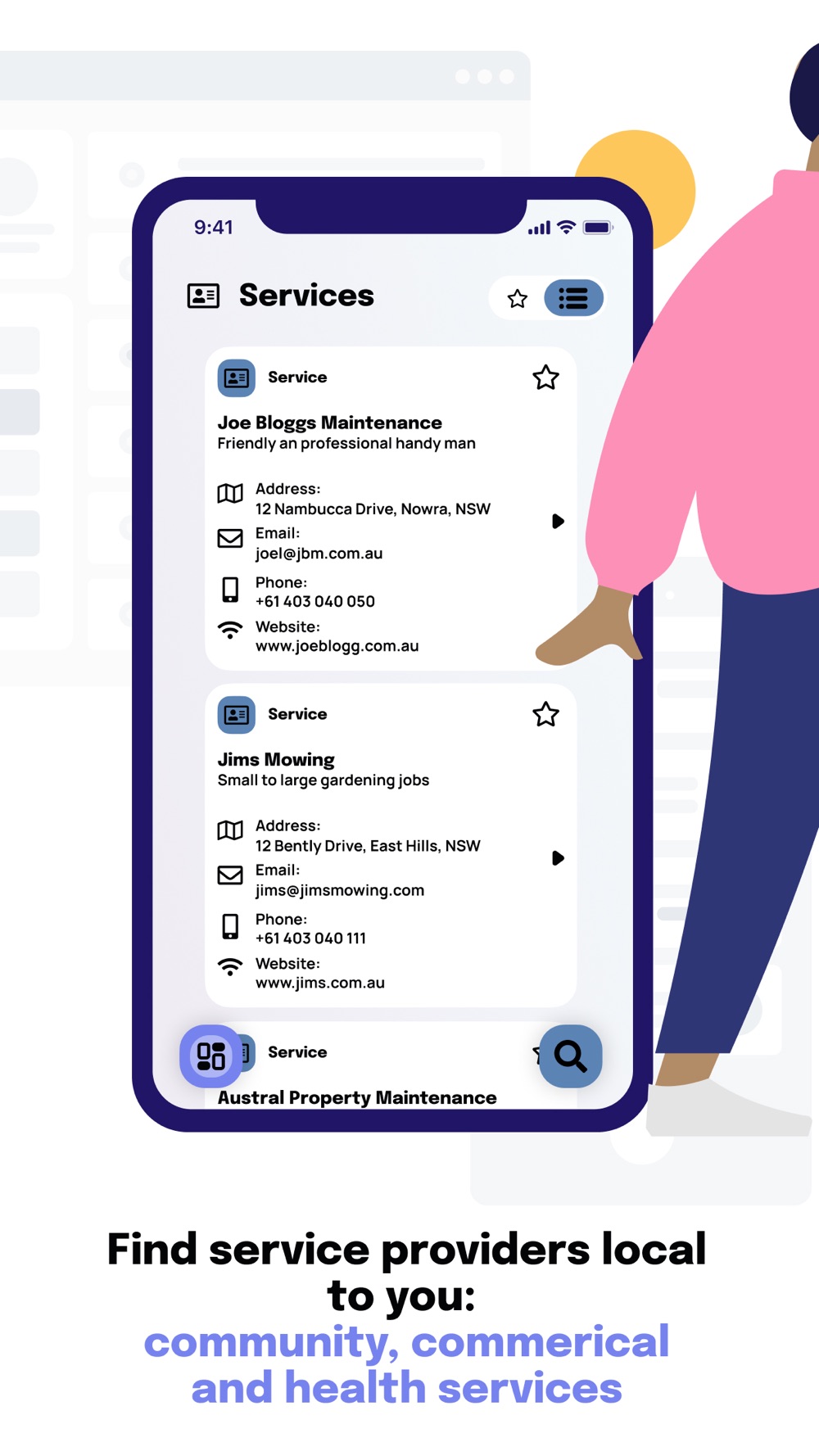 * Directory of relevant, local services: both community and health services locally and those from relevant commercial organisations