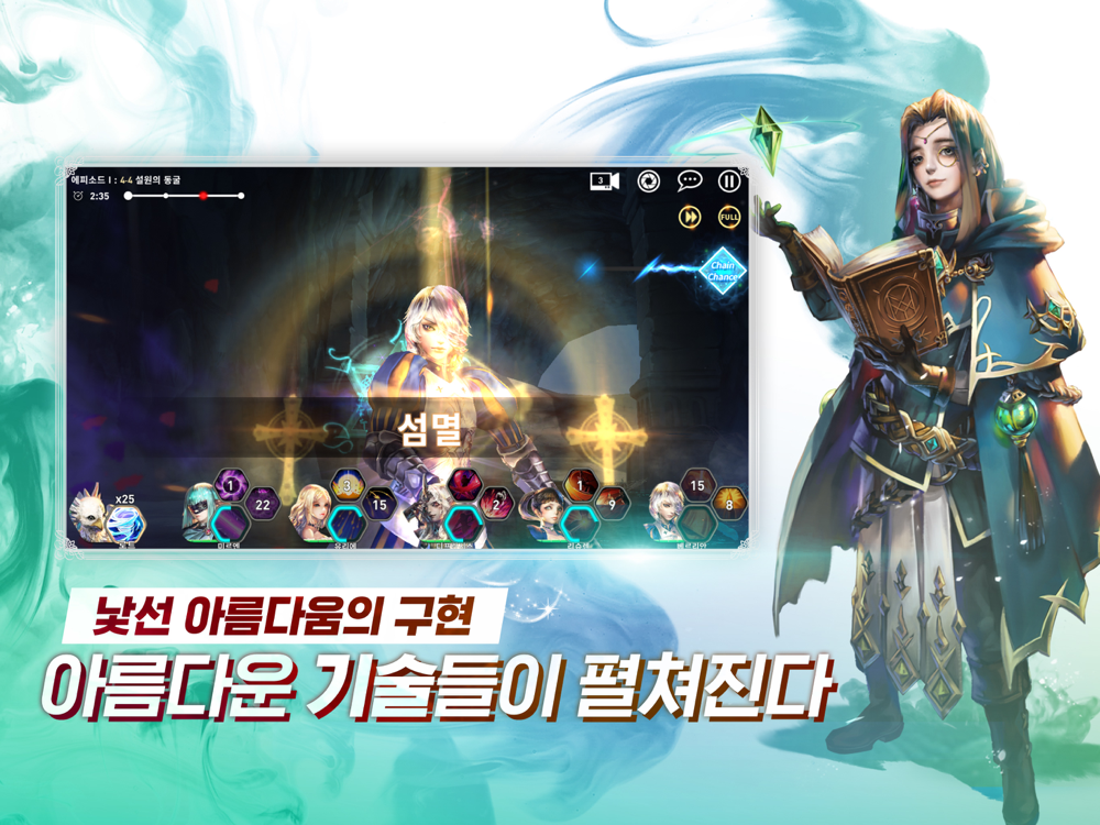 - 턴제RPG와 실시간 액션RPG의 장점만을 추려 극대화한 화려한 궁극기 스킬 연출