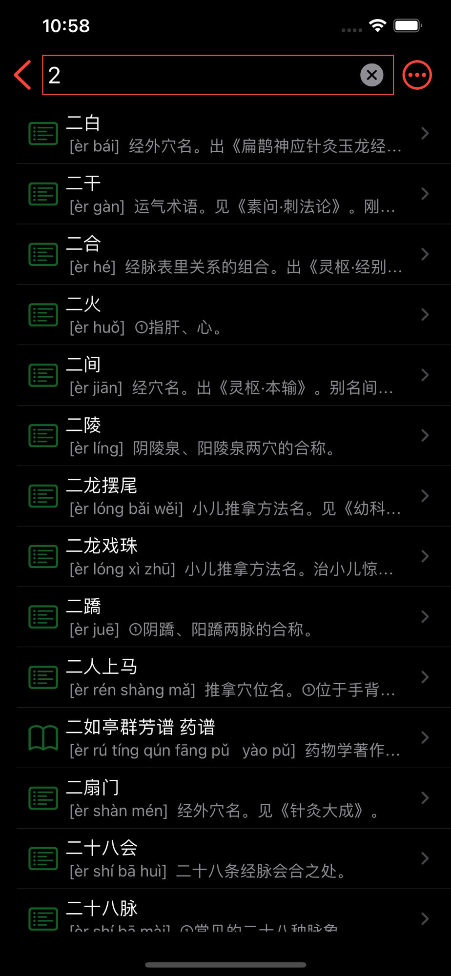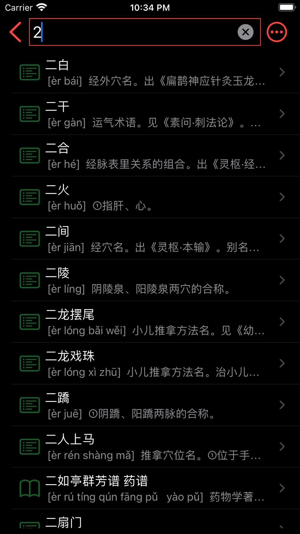 共收录近5万中医词汇,分别按照名词、医家、医学著作、中药材、经方分类整理,可按照简拼、全拼、字词、笔画数进行查询。