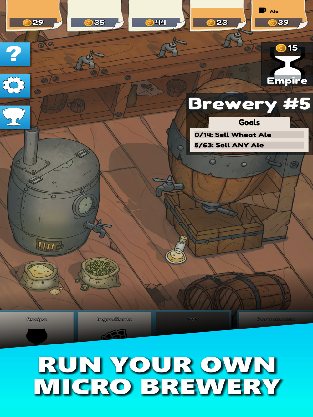 Optimize your brewery for the fastest growth possible. Eventually your brewery will reach it's full potential, and it's time for you to open another one. Keep repeating to grow your brewery empire. Each new brewery brings new discoveries and passive income.
