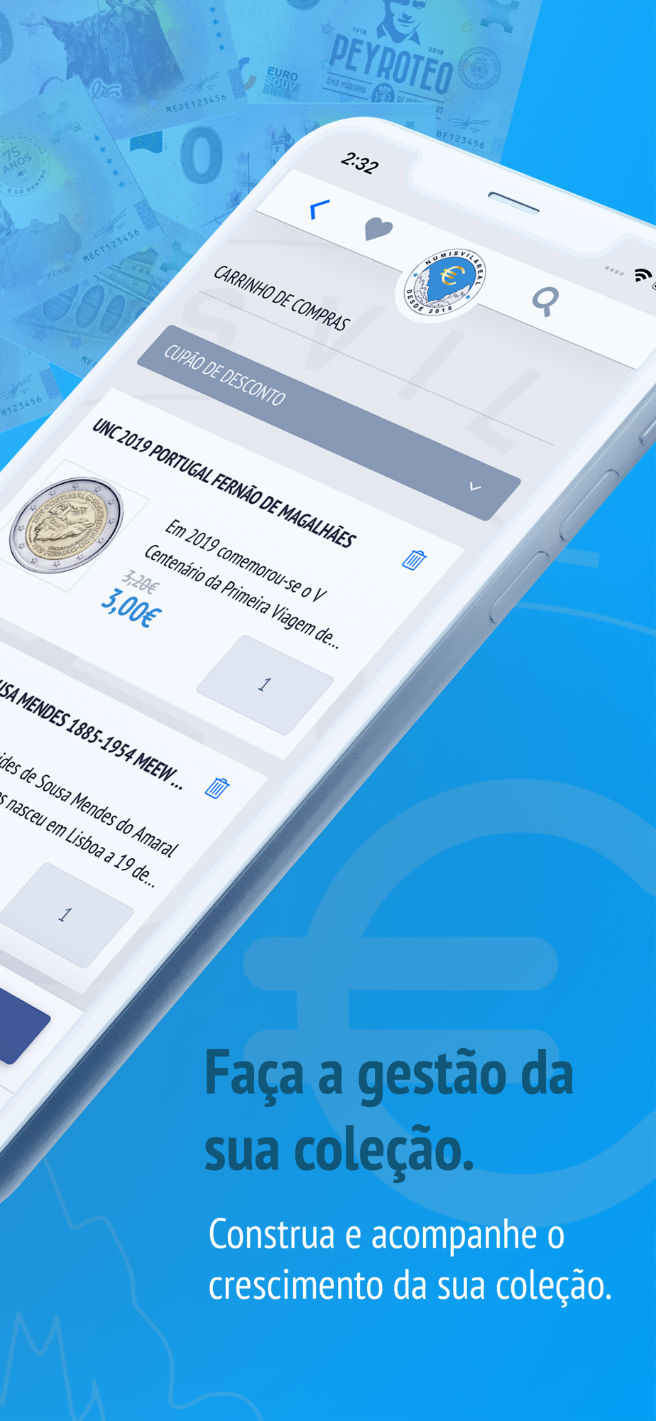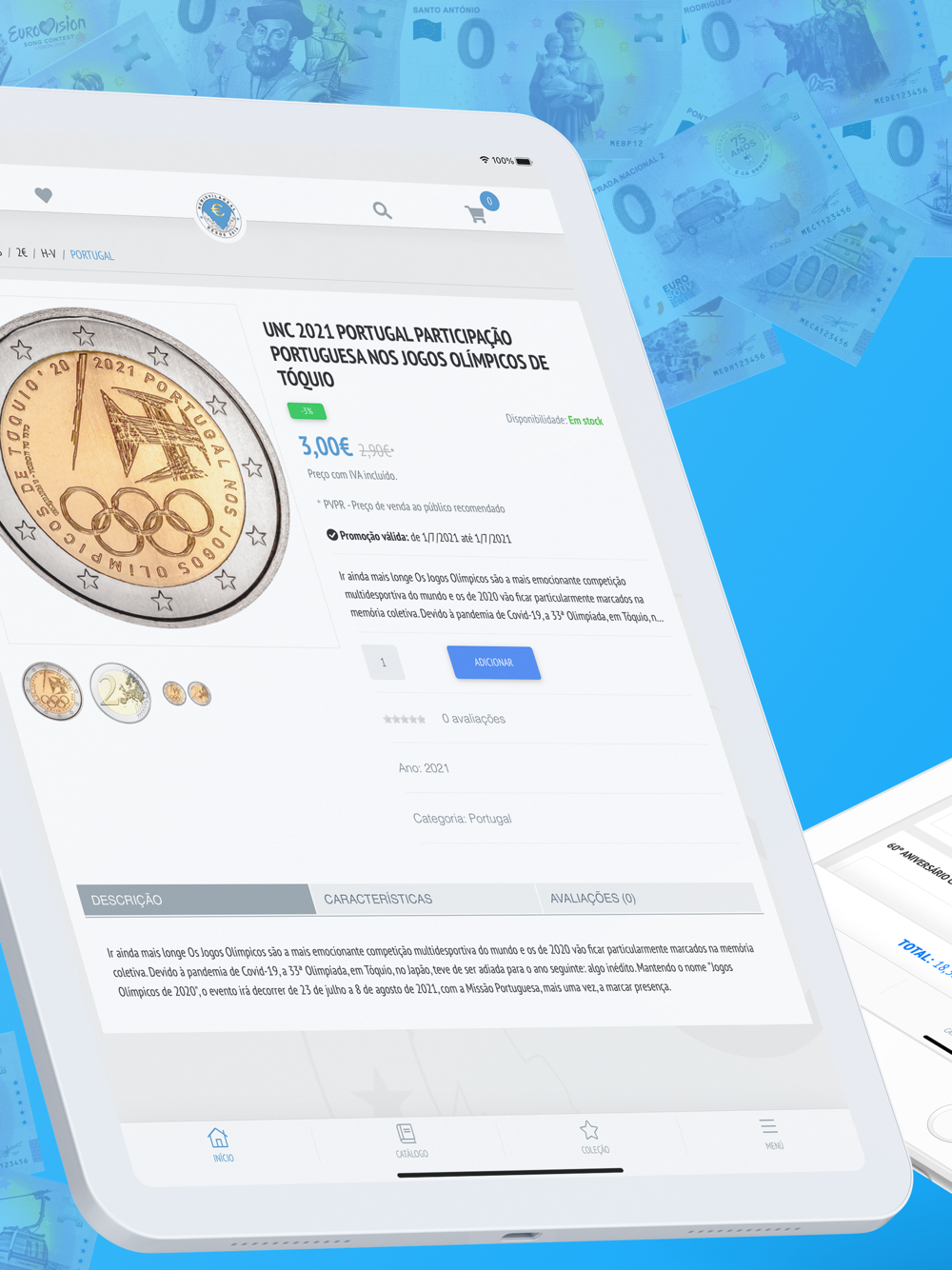 Aplicação de venda e catalogação de euro souvenirs, especialmente desenvolvida para colecionadores.