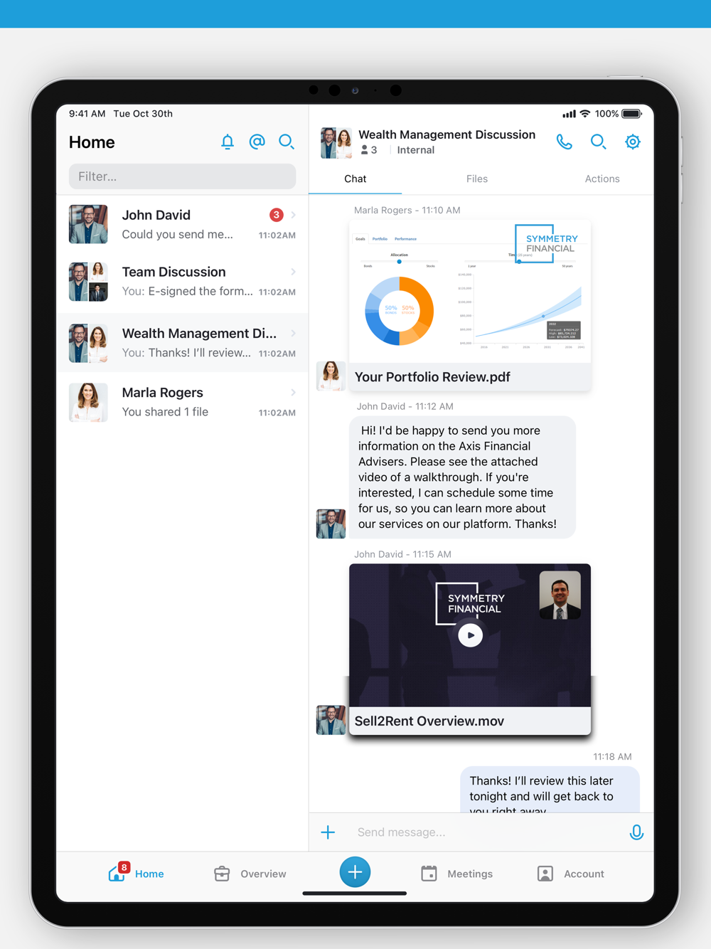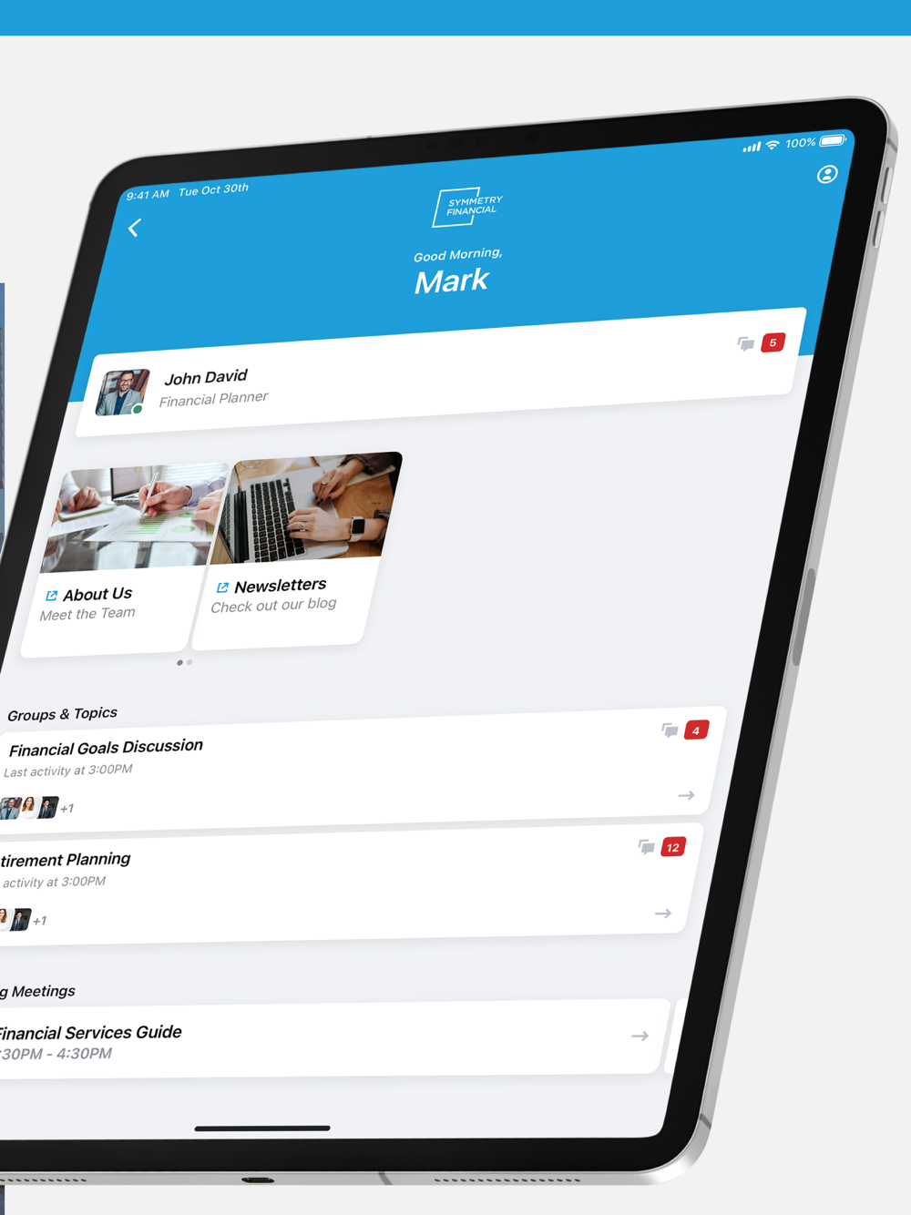 Symmetry Financial is your hub for financial decision making. Connect with us here for a one-stop experience — that provides instant access to financial advisers and support staff through secure messaging. The app will offer the ability to conduct online meetings, confirm and remind you of your appointments, store relevant documents and sign paperwork electronically to avoid unnecessary delays.