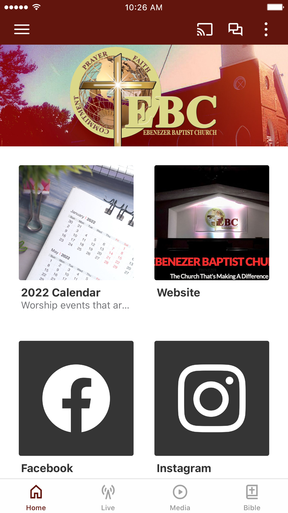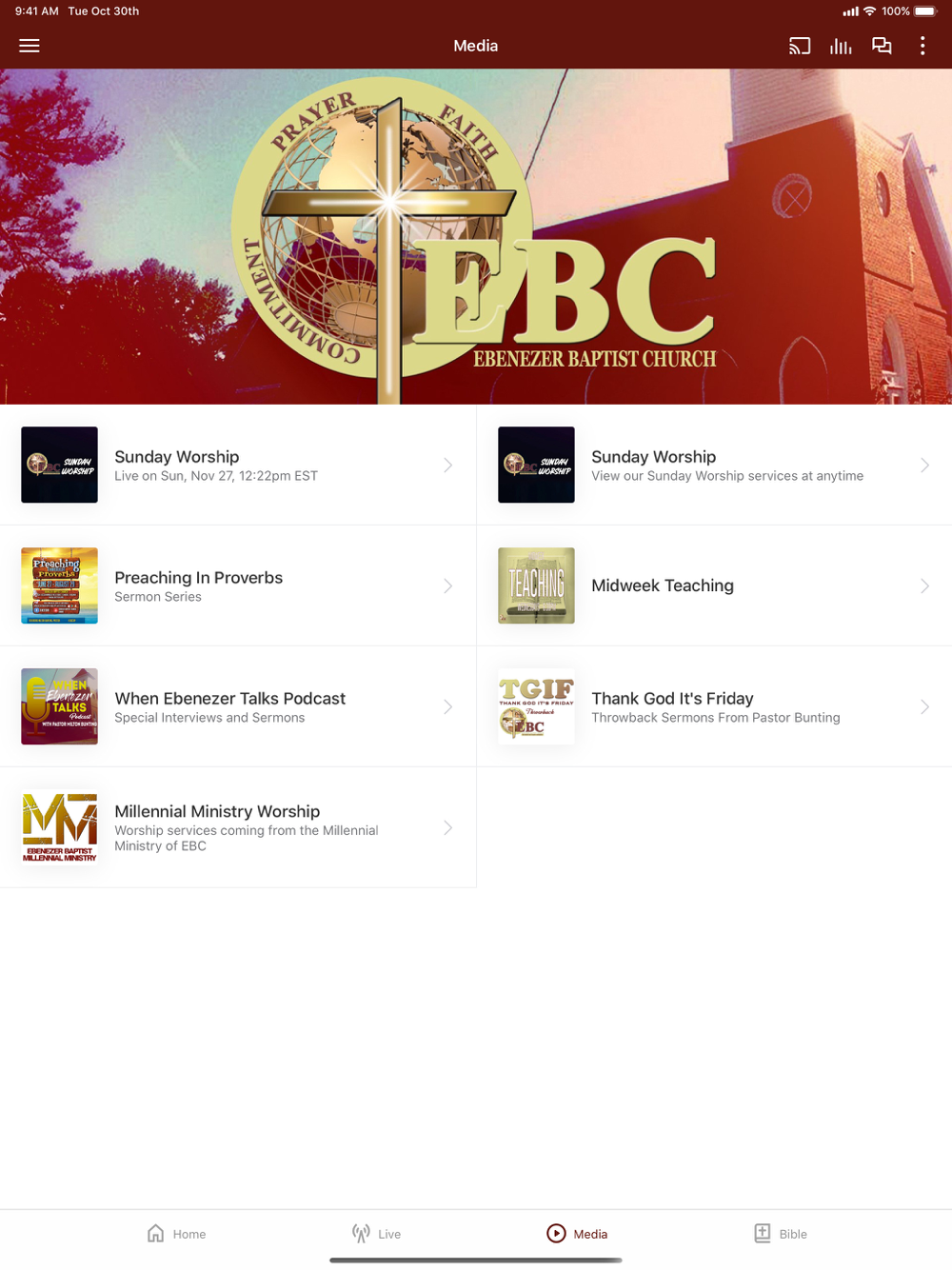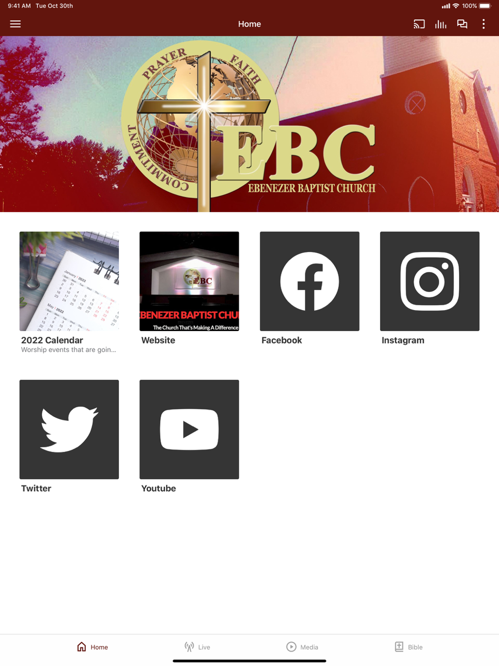 The Official App of Ebenezer Baptist Church (EBC). This all-new version is completely built from the ground up to provide you with the most relevant and up-to-date content from Ebenezer Baptist Church. The Ebenezer Baptist Church app is the ultimate mobile church app. Podcasting, reading and listening to the Word of God will become so easy with the Ebenezer Baptist Church app. Quick tabs make it easy to quickly find the passage you want to read. You will be able to stay connected with audio, video, devotionals, podcasts and a variety of resources from EBC. You will be able to Watch LIVE services from Ebenezer Baptist Church and stay updated on Ebenezer Baptist Church Video Broadcasts. This app will help believers and non-believers grow in their faith, and will provide easy access to life-changing audio and video sermons, upcoming events and relevant information about Ebenezer Baptist Church. Additionally, you will also be able to share content with your friends via Twitter, Facebook and email.