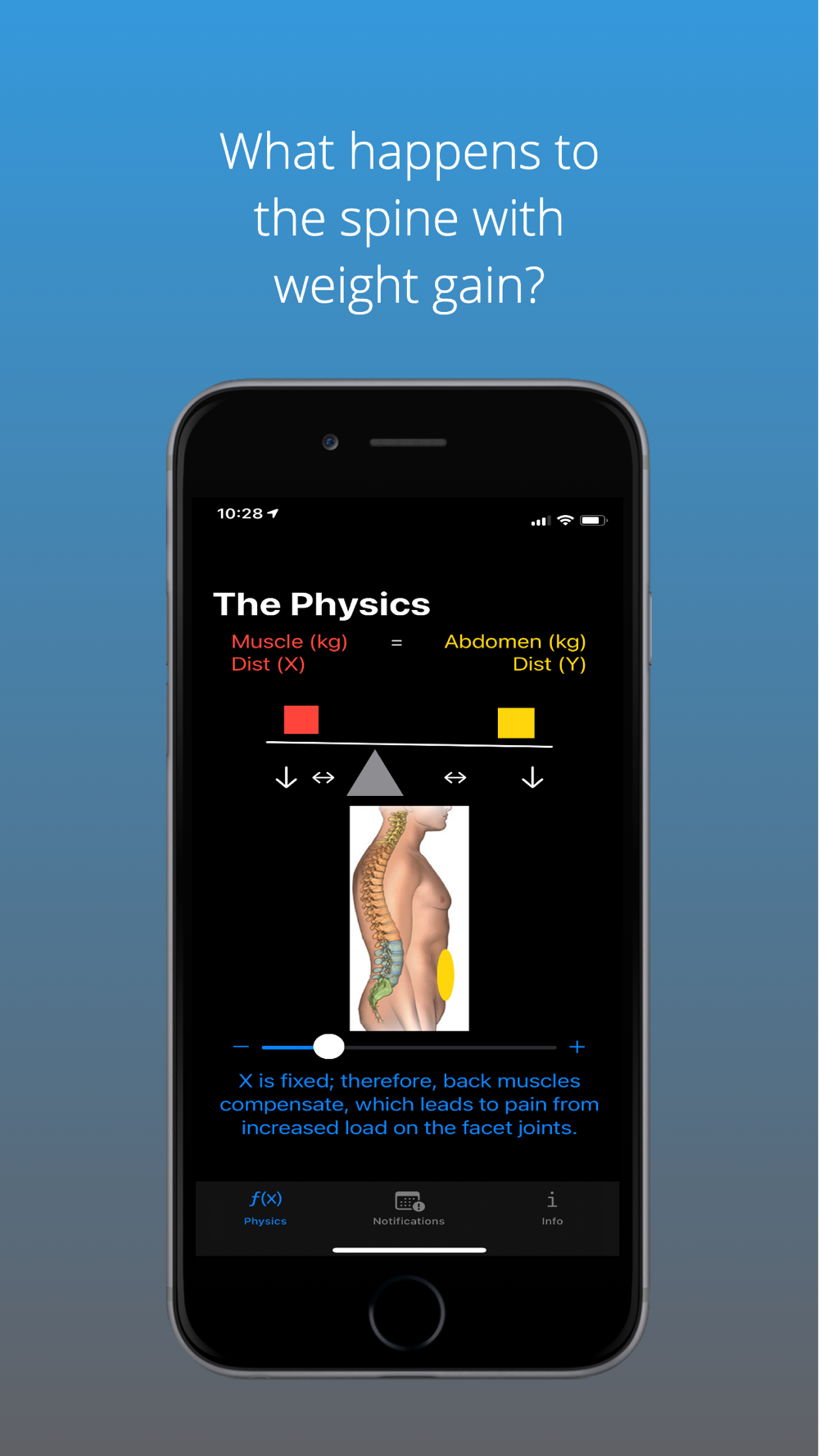 Spine Physics visualizes the effects of obesity on the body. The analogy of the spine to a teeter totter shows the importance of keeping the abdominal girth small and light. As a surgeon, I draw this all the time for my patients to educate them.
