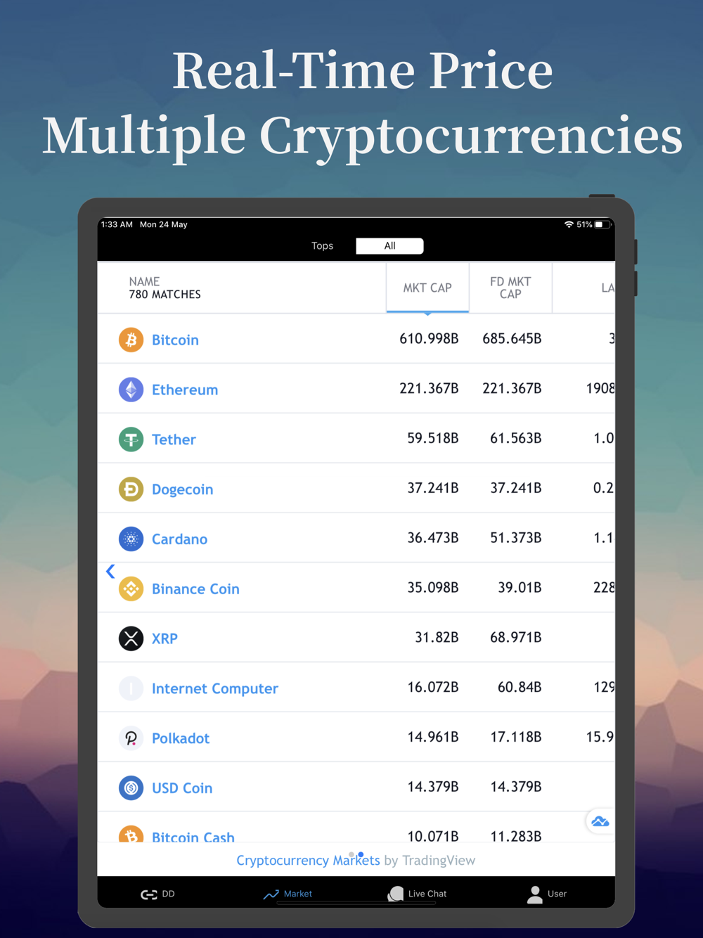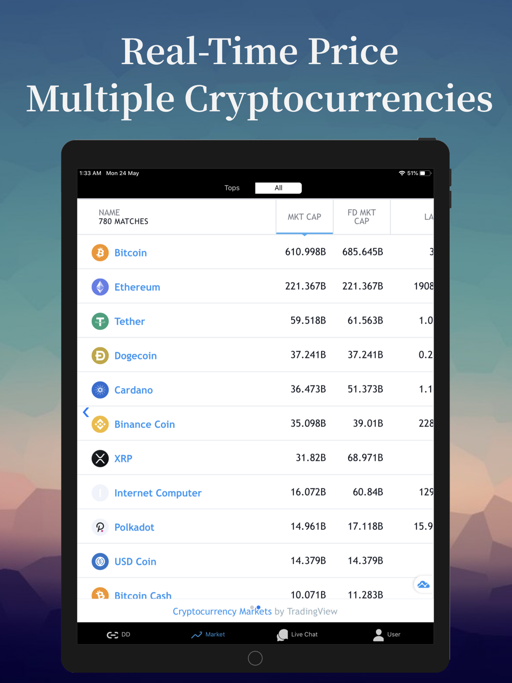 Put your favourite cryptocurrencies into the WatchList for the real-time pricing.