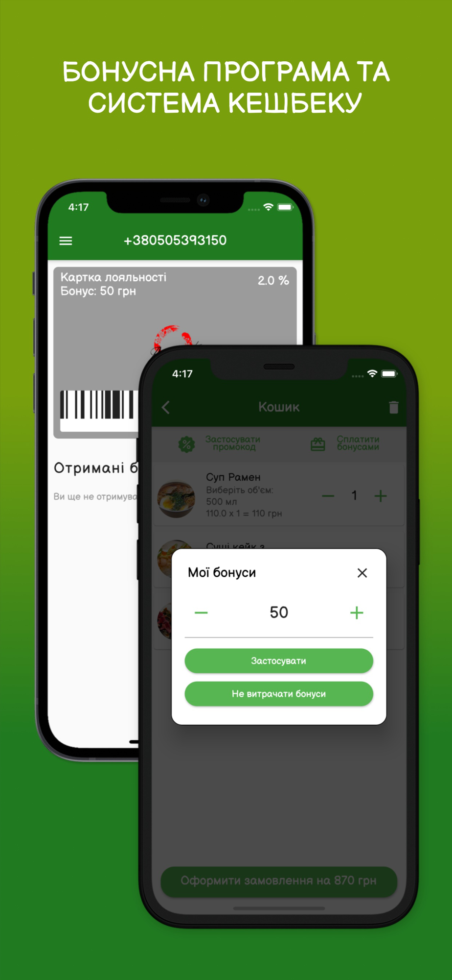 - отримати бонус 50 грн за встановлення Arigato Sushi Bar додатку;