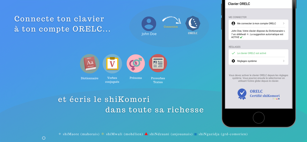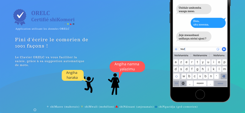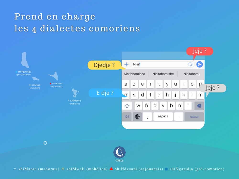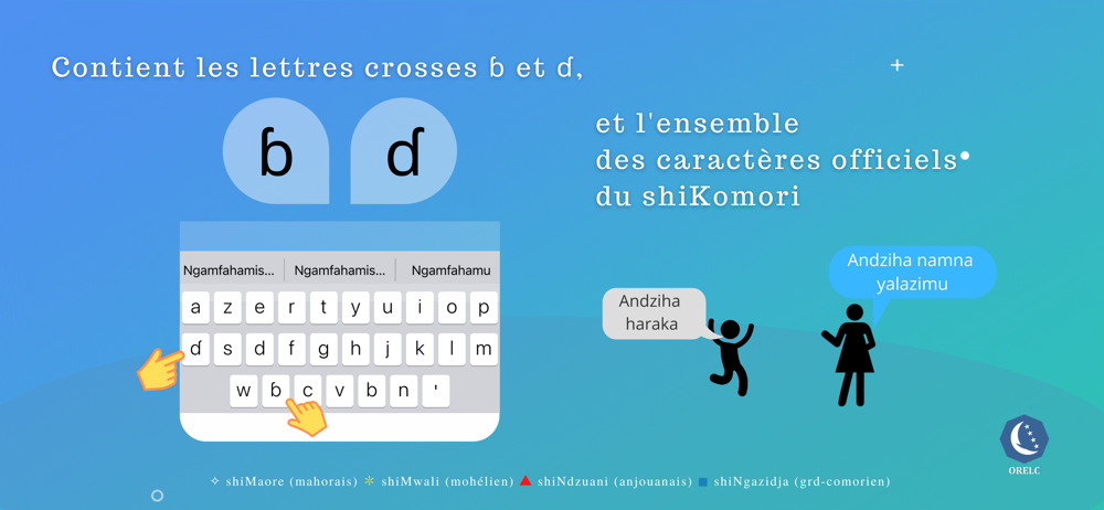 Le clavier ORELC permet d'écrire dans le dialecte shiMaore (mohaorais), shiMwali (mohélien), shiNdzuani (anjouanais) ou shiNgazidja (grd-comorien) en conformité avec les règles orthographiques du shiKomori (comorien).