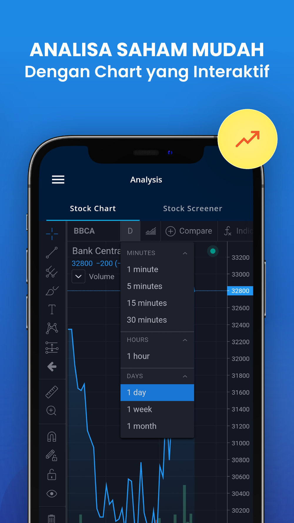 Stock Screener memberikan analisa teknikal secara otomatis, anda tinggal tentukan pola nya dan dapatkan langsung daftar rekomendasi sahamnya.