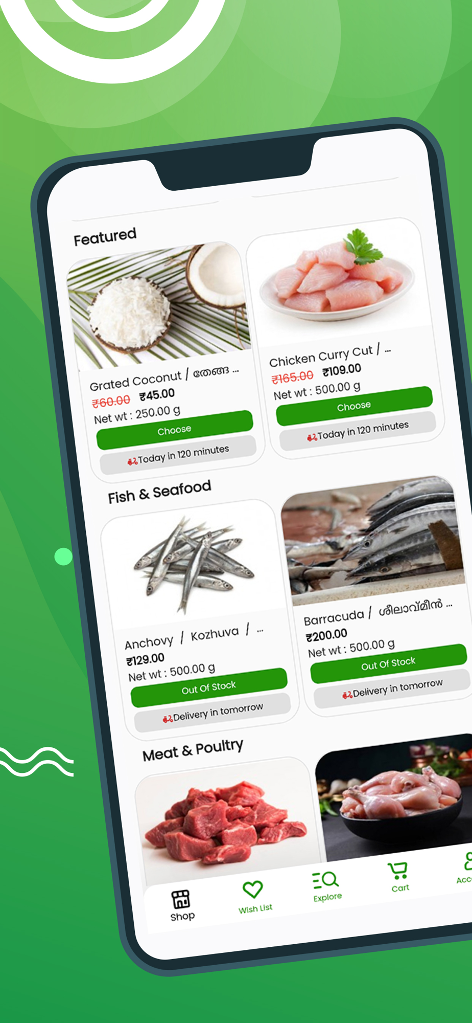 Choose My Fresh, the leading and best home delivery app in Kochi, serving quality assured meat, poultry, fish, vegetables and groceries delivering in rural and urban areas in Kochi