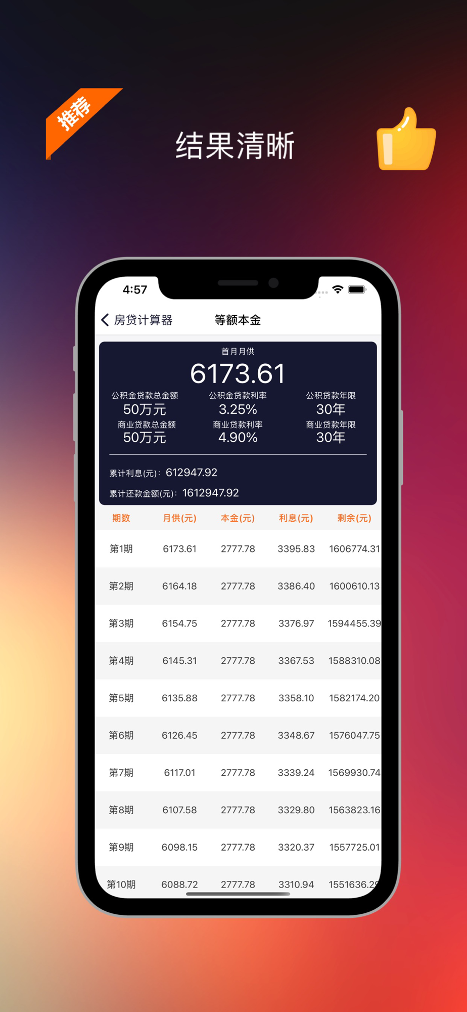 不管是商业贷款、公积金贷款还是组合贷款,不管是等额本息还是等额本金,一个工具全部搞定。