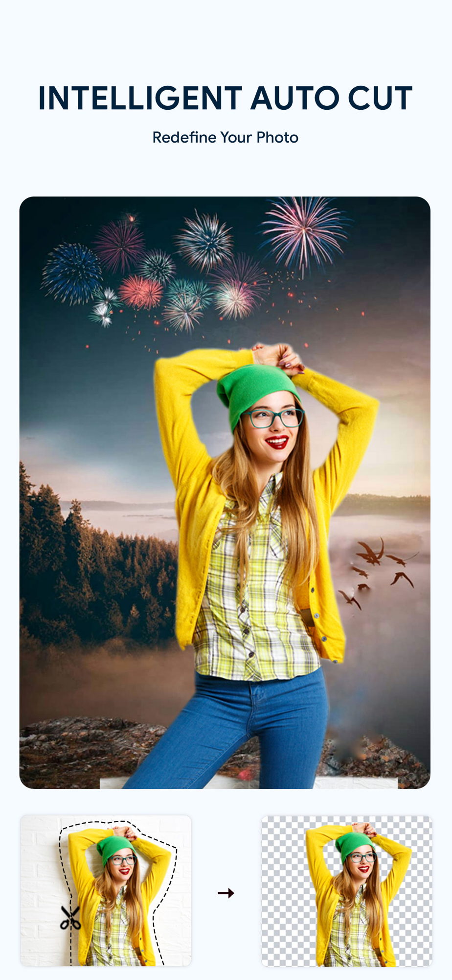 Just select and erase the objects you want to delete accurately. In PickU photo editor & background eraser, we provide hundreds of emoji backgrounds, natural backgrounds, frame backgrounds, and more other templates.