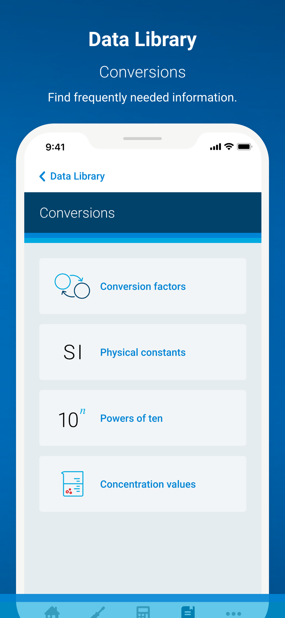 This section shows you LC-related information, such as the conversion factors between different units, details of selected physical constants, powers of ten, and concentration values.