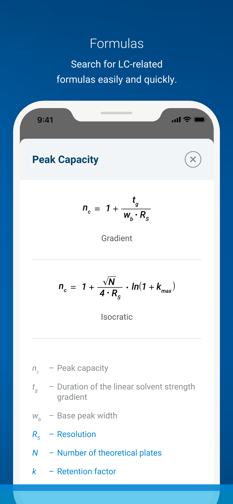 This section lists LC-related formulas. The search function helps you find formulas easily and quickly. All formulas, as well as all related parameters, are listed and linked to other related formulas if applicable.