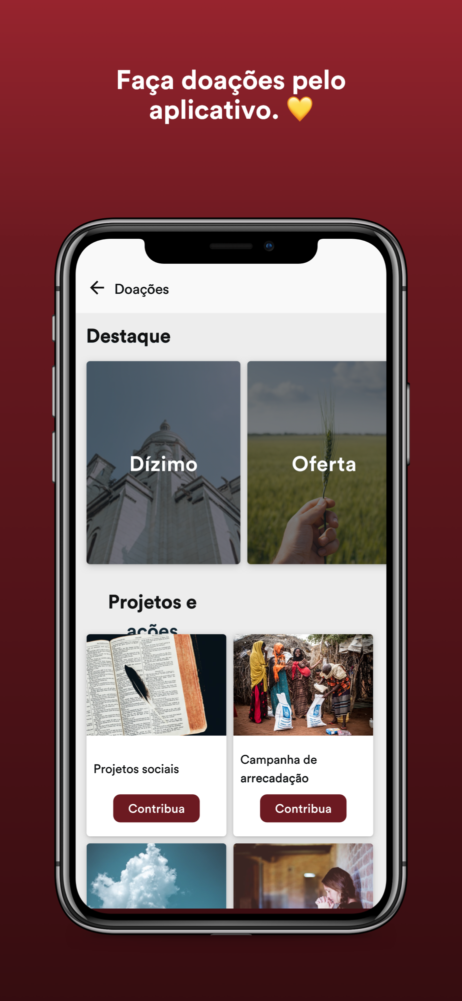 - Conecte-se com a igreja através dos grupos de interesse, receba conteúdo direcionado e obtenha sua carteirinha exclusiva.