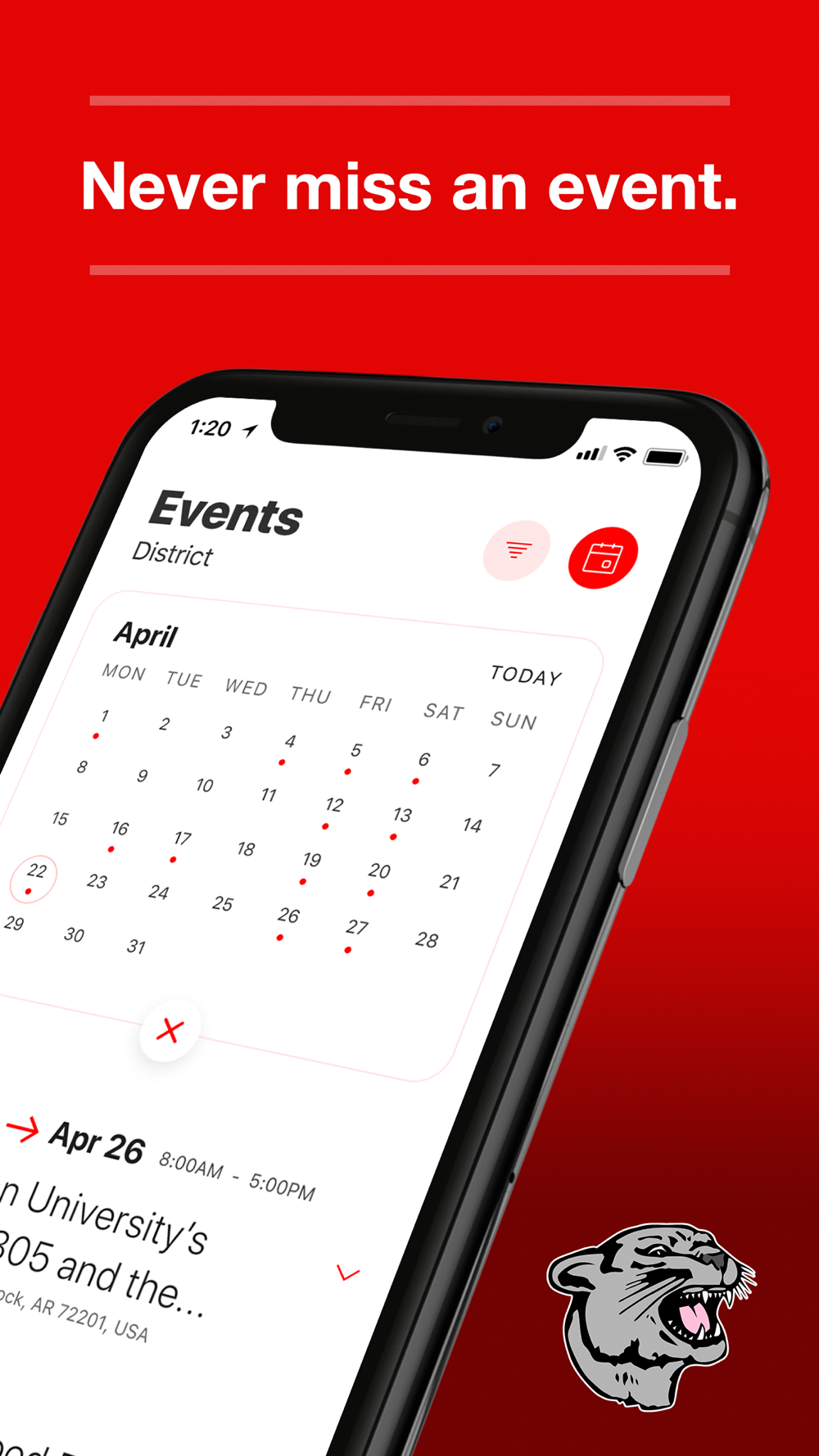 NEVER MISS AN EVENT