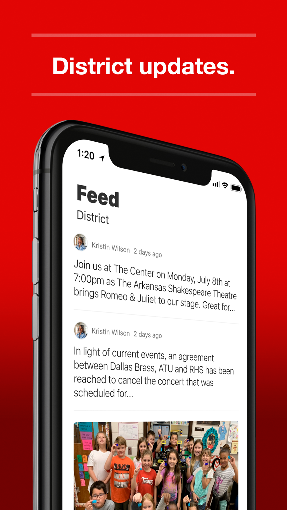 In the Live Feed is where you’ll find updates from the administration about what’s going on in the district right now. Whether that’s celebrating a student’s success, or reminding you about an upcoming deadline.