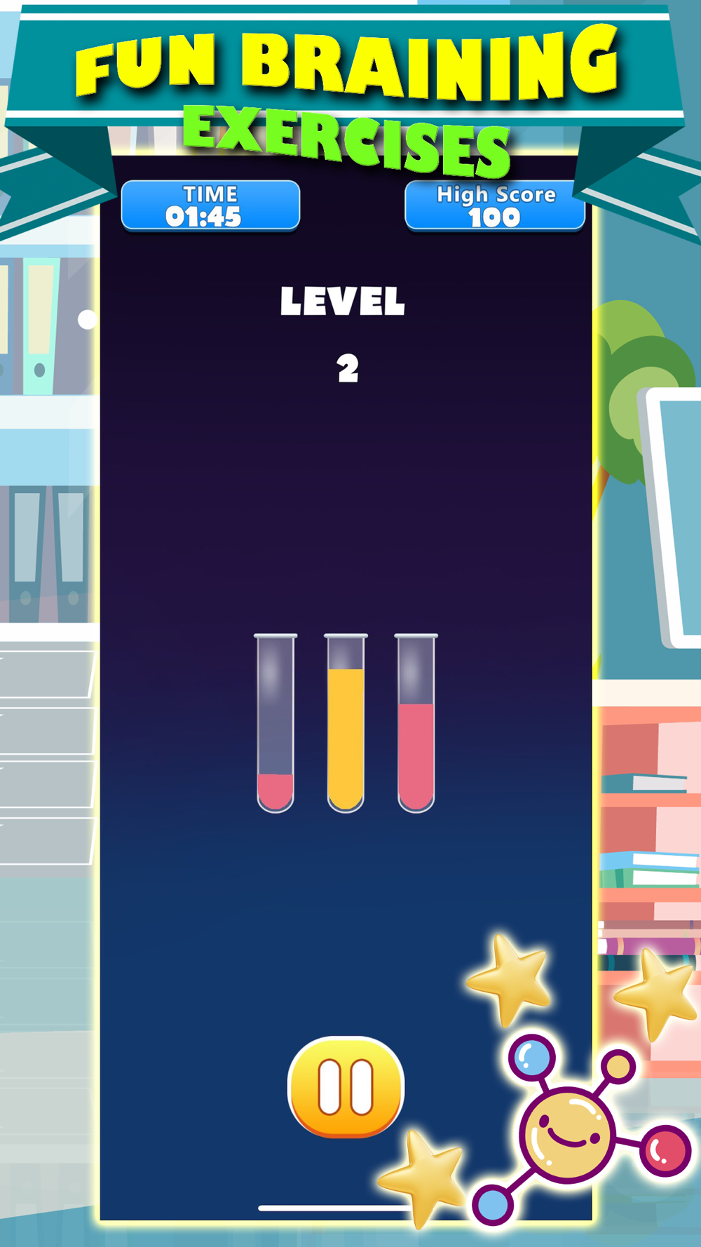 Welcome to fun and addictive puzzle game! Try to sort the colored water in the glasses until all colors in the same glass. A challenging yet relaxing game to exercise your brain