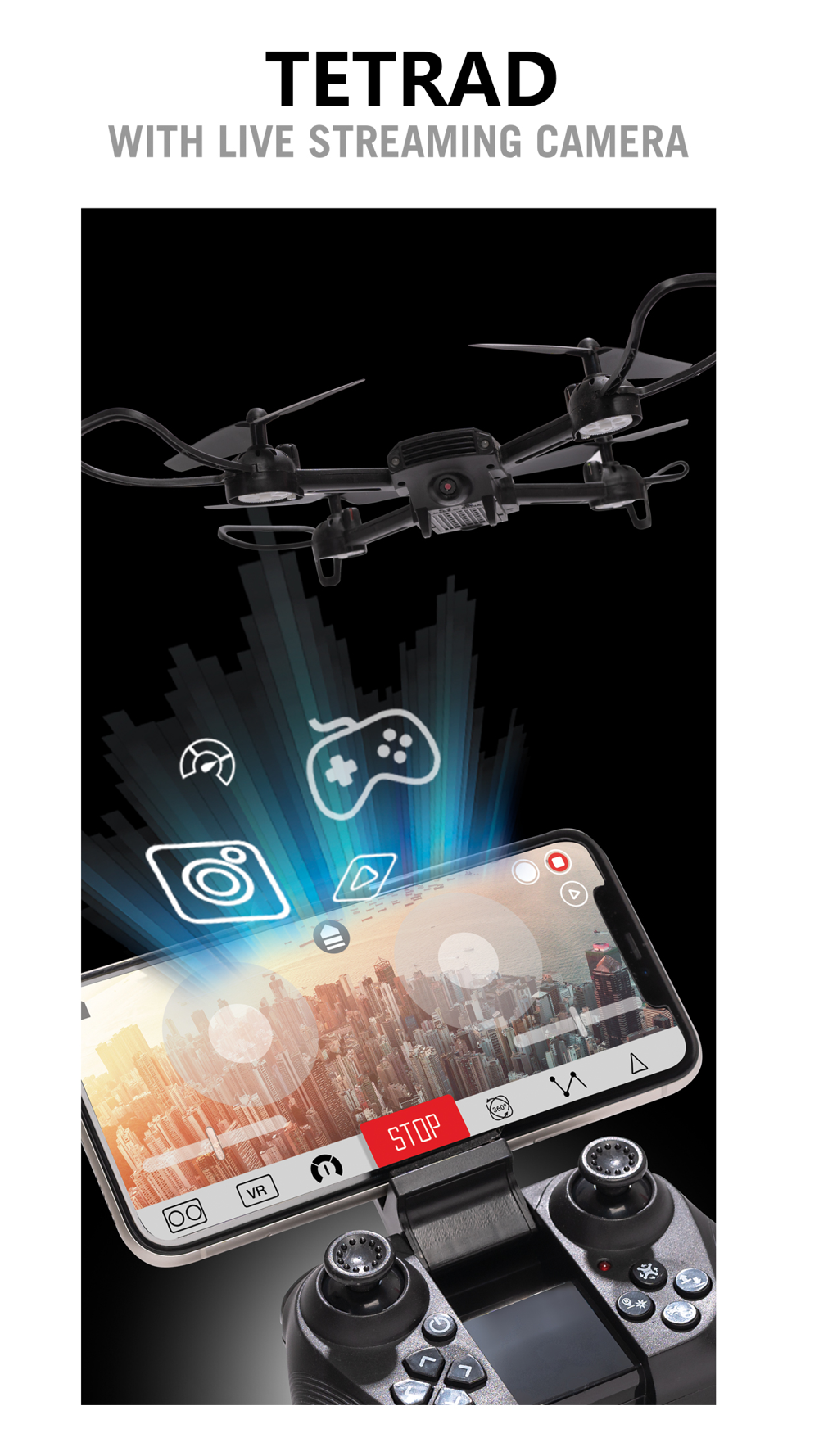 App connects smartphones to Tetrad via drone’s built-in Wi-Fi signal.