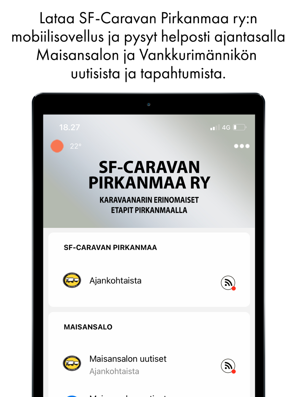 SF-Caravan Pirkanmaa ry:n virallinen mobiilisovellus puhelimelle ja tabletille.