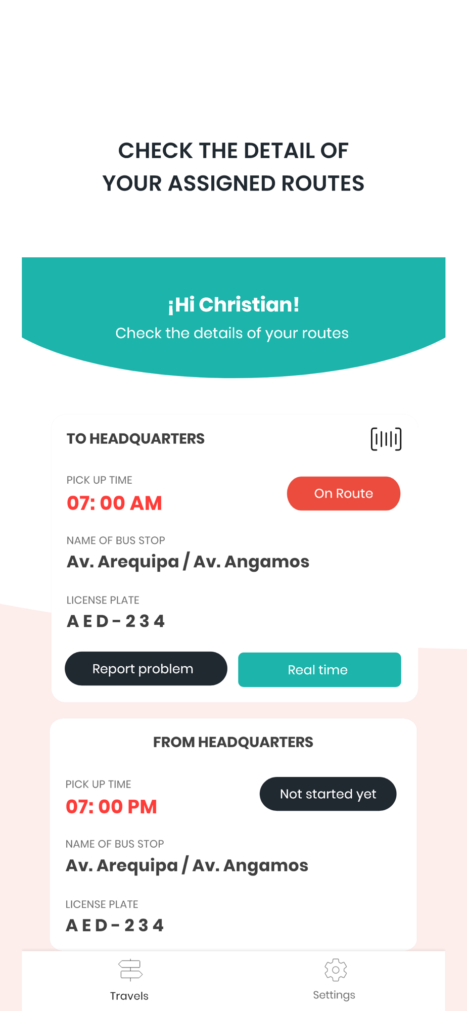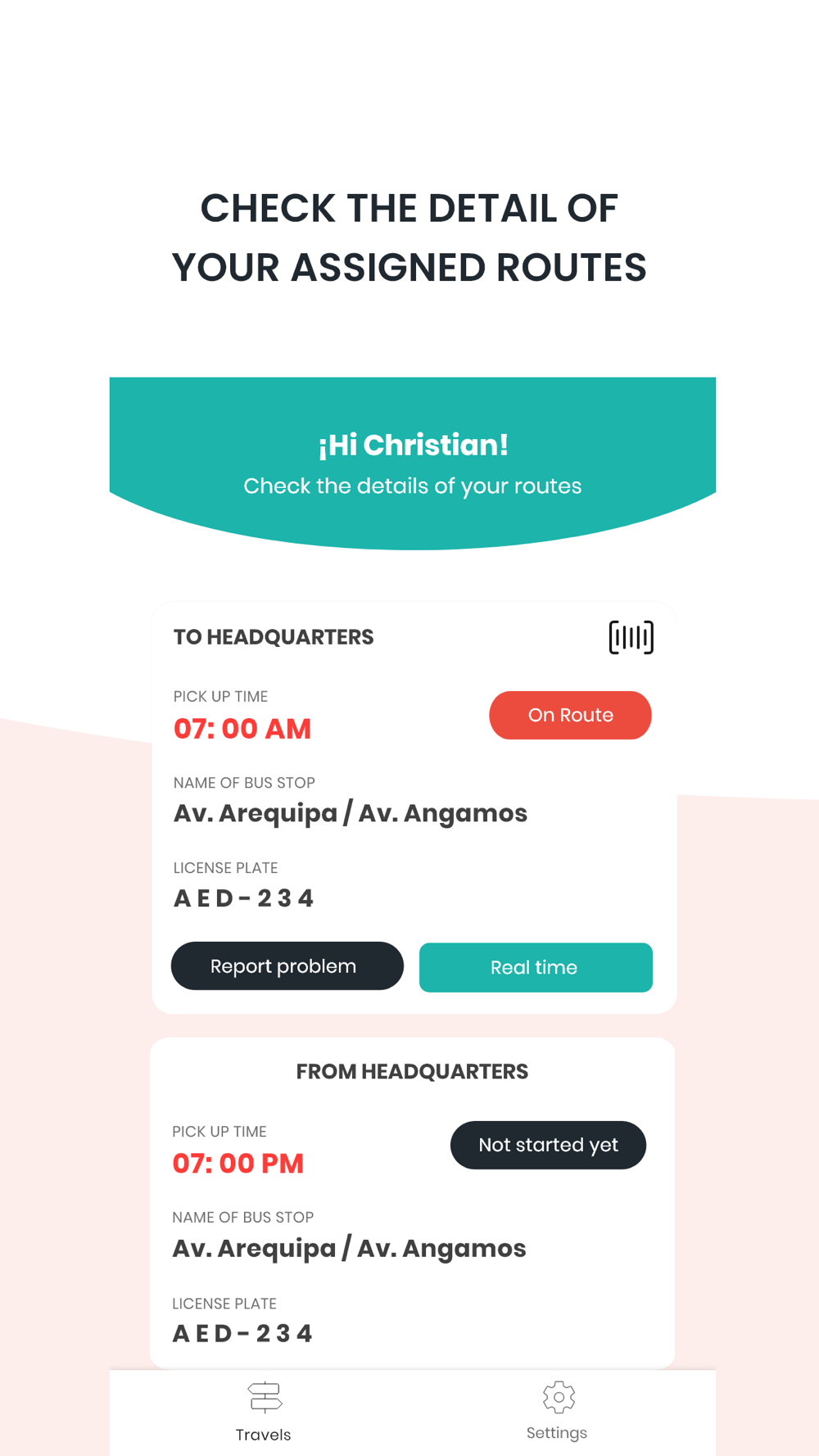 You will be able to review your routes, edit them, track the location of your driver in real time, communicate with him, scan the barcode to record your boarding and report any problem to our support team who will be there to help you at any time.