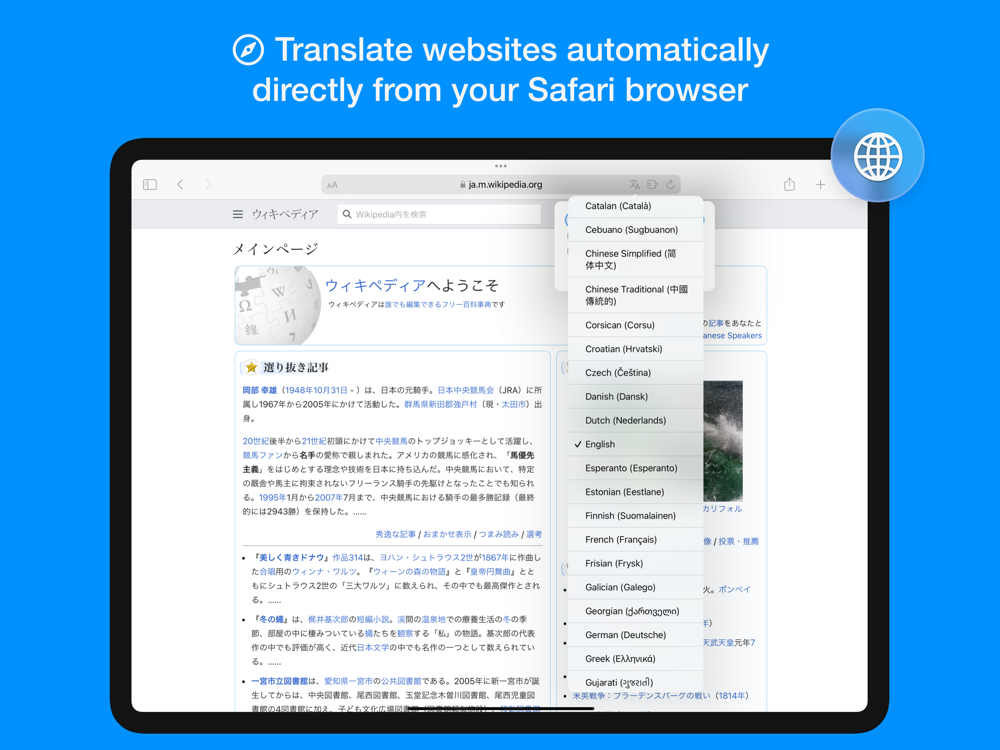 • Translate and replace content you write (email, forms or documents). For example, write a report in English and let the app replace it with a German translation