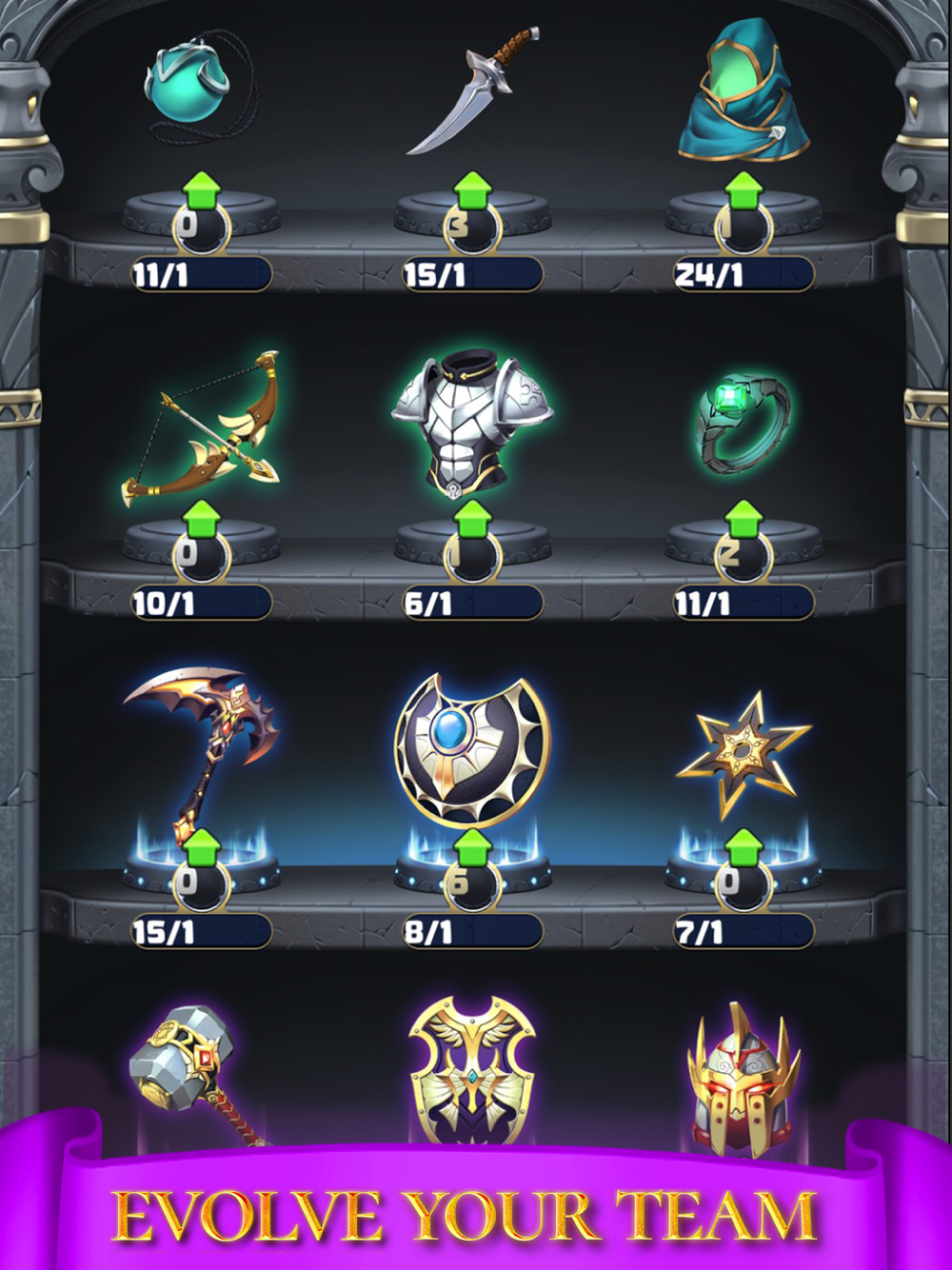 Summon hundreds of legendary heroes and lead your army to master the war between gods and evil. Strengthen them with magical upgrades and special gemstone skills.