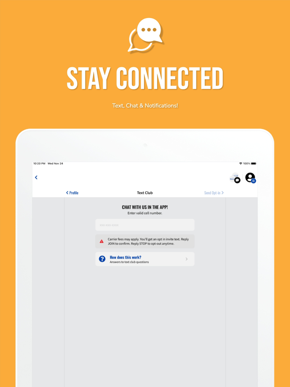 - Live support with 2-way chat & text