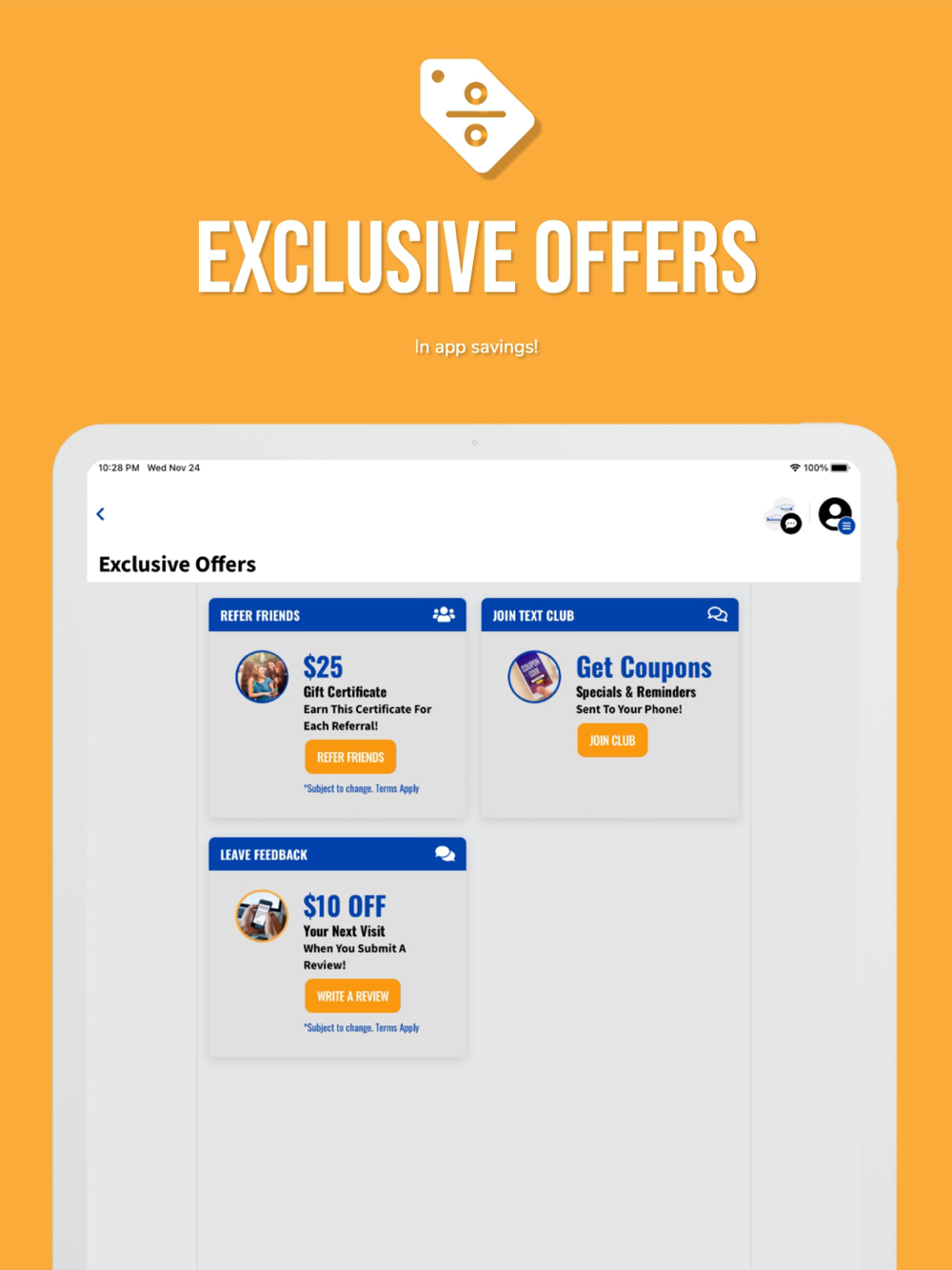 - Earn rewards for visits to our shop