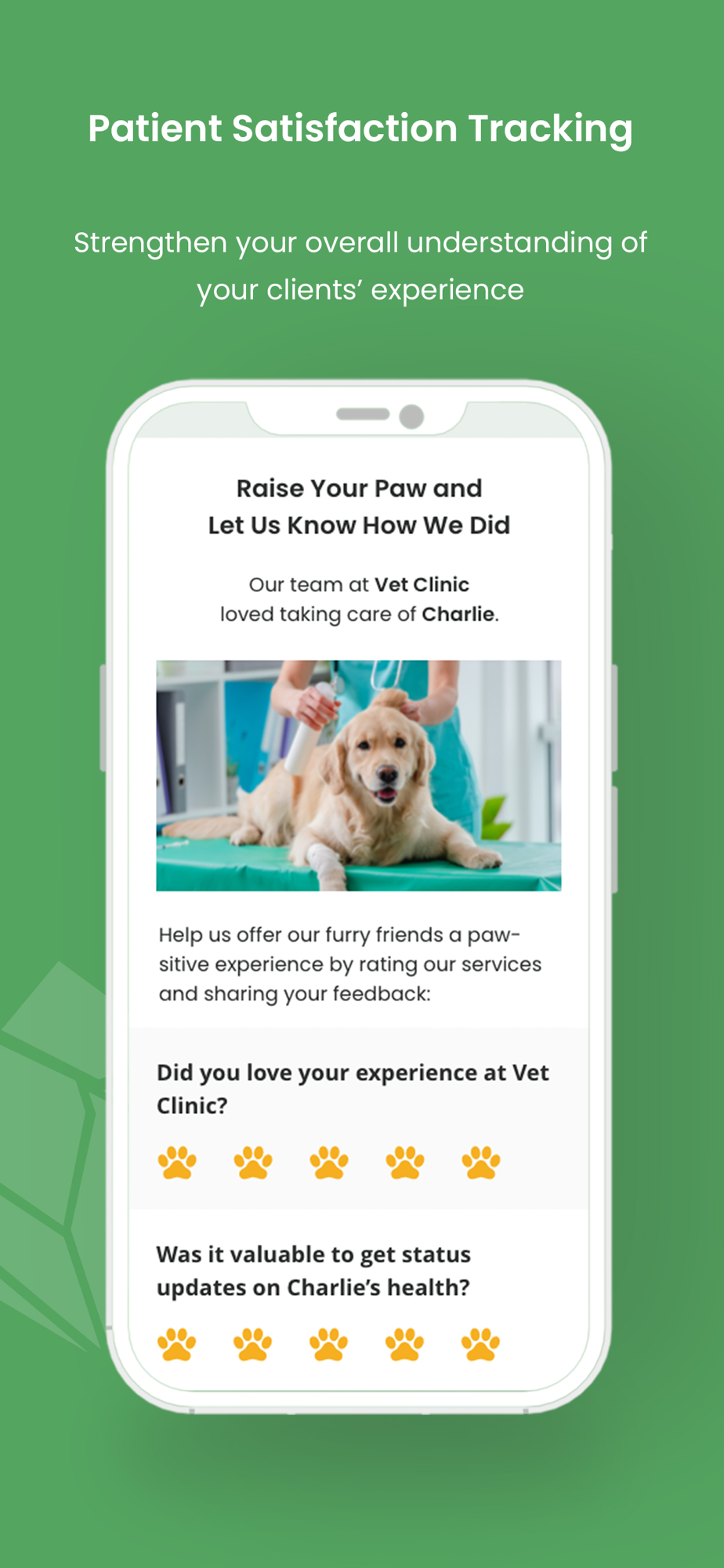 Rely on Gemma to reduce pet families' anxiety triggered by health emergencies and restricted in-person visits. Build trust and give families the peace of mind they need with real-time updates on their pets' health and the ability to share the feed with loved ones. Track patient satisfaction through surveys and reviews.