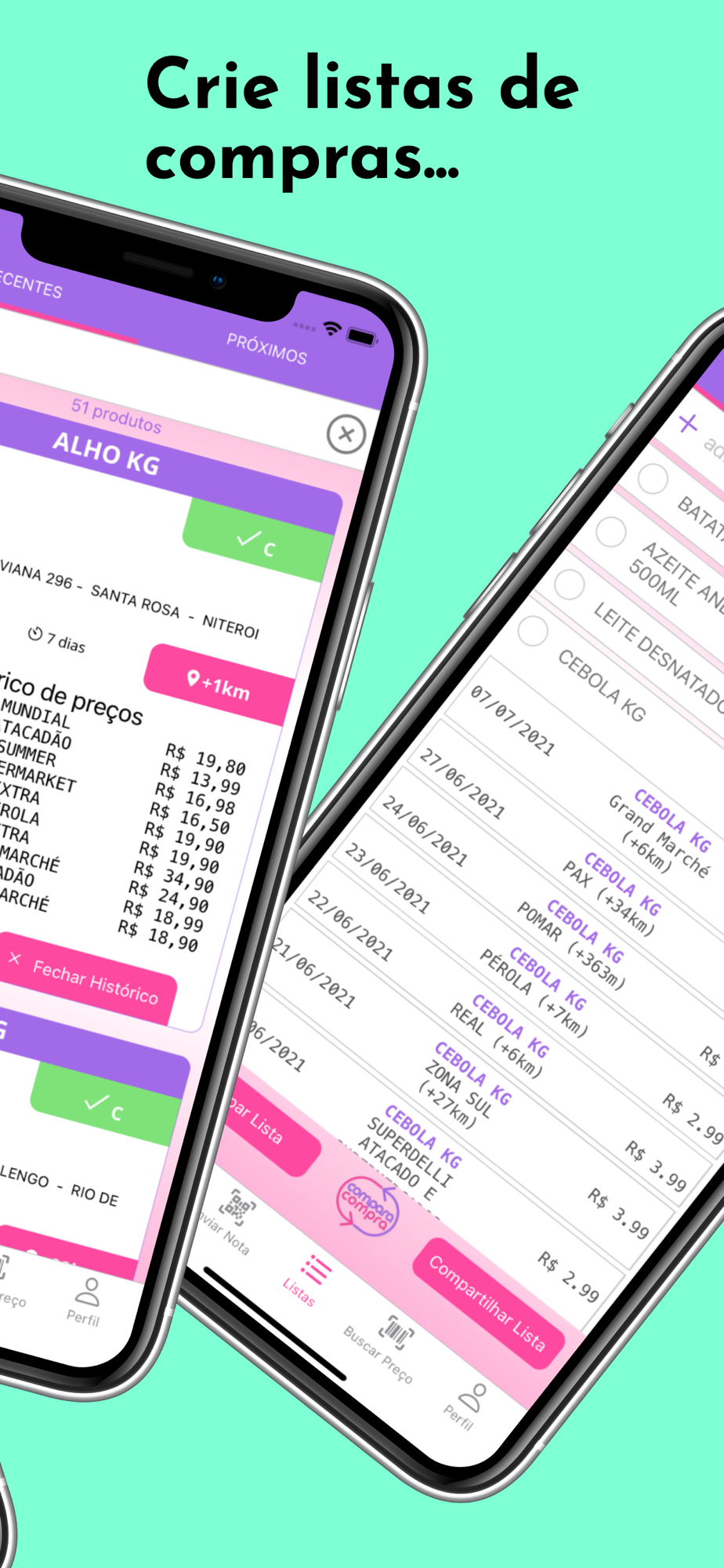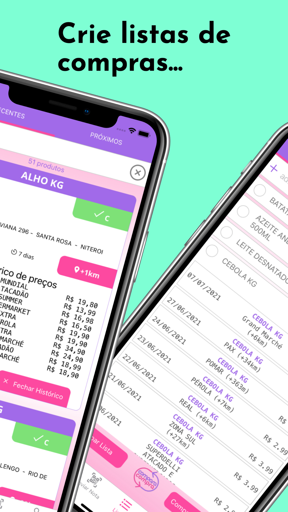 - Faça lista de compras e saiba os preços de cada produto pelos mercados em sua região;