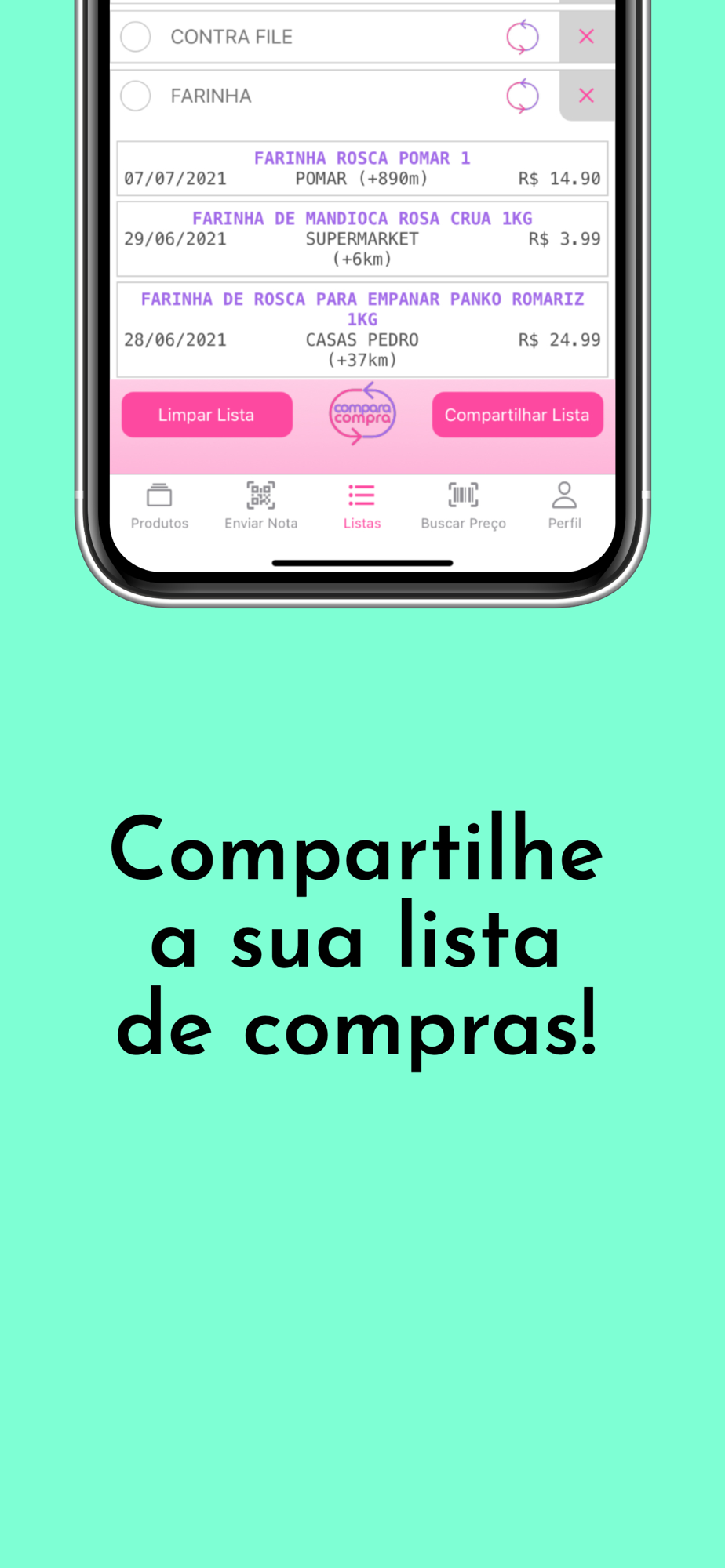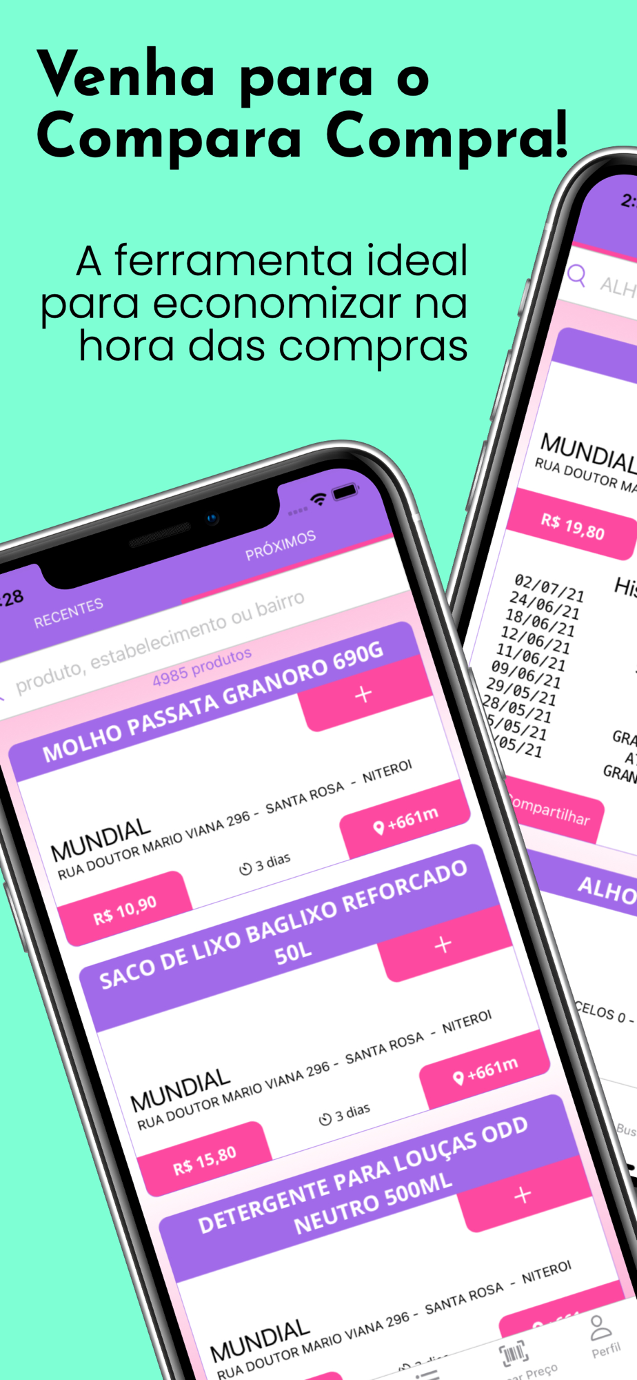 Olá! Somos o Compara Compra, um aplicativo mobile onde você pode monitorar os preços dos produtos de mercado e muito mais: