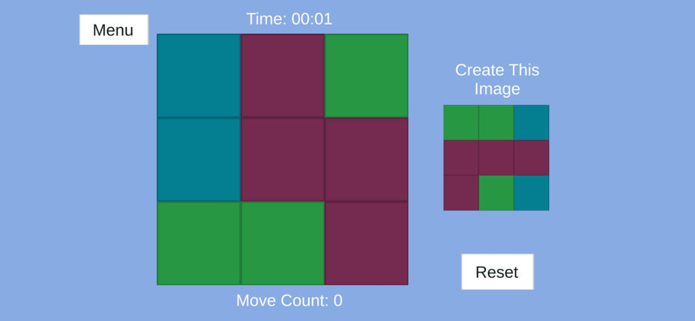 A cool puzzle game where you unscramble colourful squares and create a given image. Some can do it but some can't, are you up to the challenge?