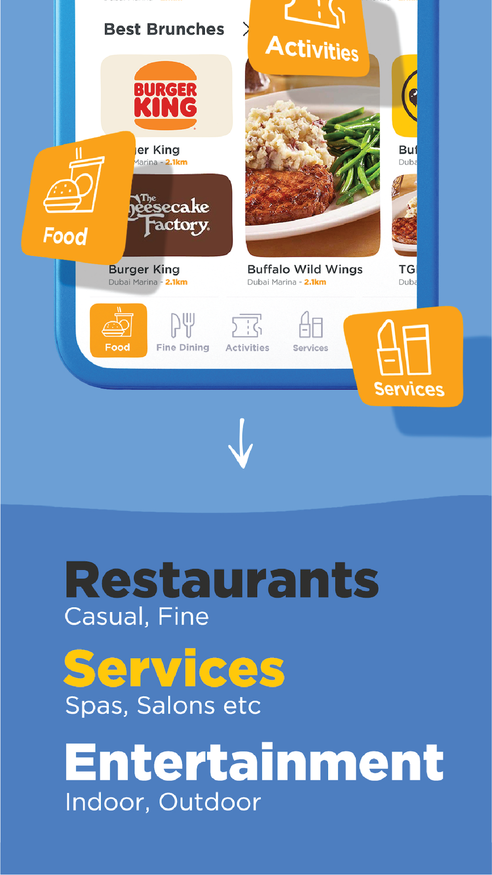 Saver app goes far and wide, over and beyond to provide the best deals, discounts, promo codes and vouchers in UAE. No matter where you are in UAE, we have got you covered with restaurant deals, discounts and vouchers for activities and services. Saver app discounts are valid in any city around the country, so you can enjoy discount deals even while you are on holiday, business trip or visiting friends and relatives in a city different from yours. You are sure to find an entertainment coupon or a 2for1 fine dining deal that comes with a side dish of smiles.