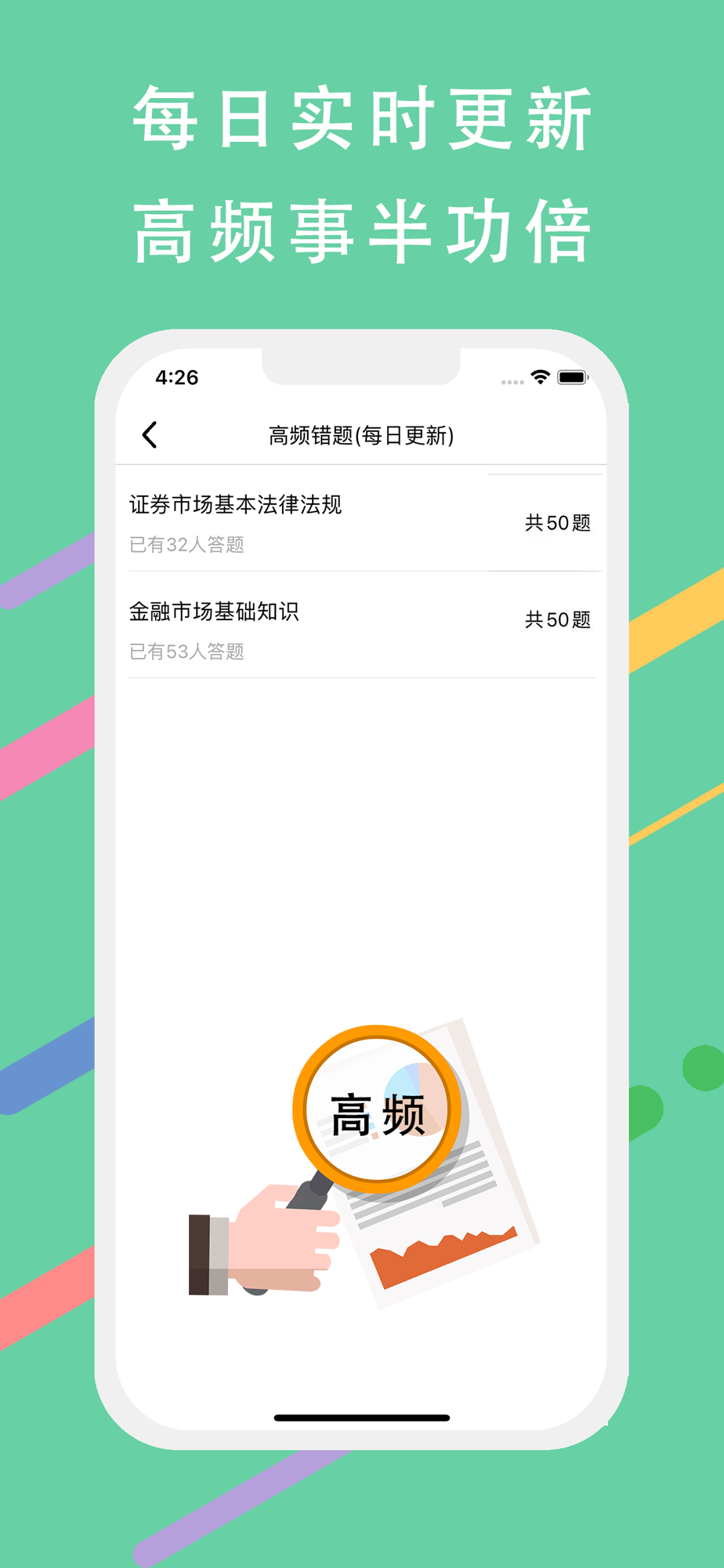 证券从业资格证一款随时随地可用的智能高效刷题软件。考生可通过设置备考目标,快速开启高效提分计划。同时我们拥有超大型在线题库,主要功能包括章节练习、随机练习、高频考题、历年真题,模拟考试等多种形式,让学生边学边练,达到进一步巩固学习效果的目的。在考前冲刺阶段还有考前模拟试题,帮助学员模拟实战,把握考试精髓,增加考试通过率。