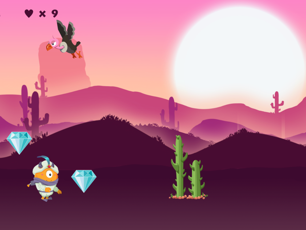 Start your adventure on your rebounder. Use your motion - jump or duck in time to play the game: "You jump, I jump", says the little monster to you, "and you duck, I duck".