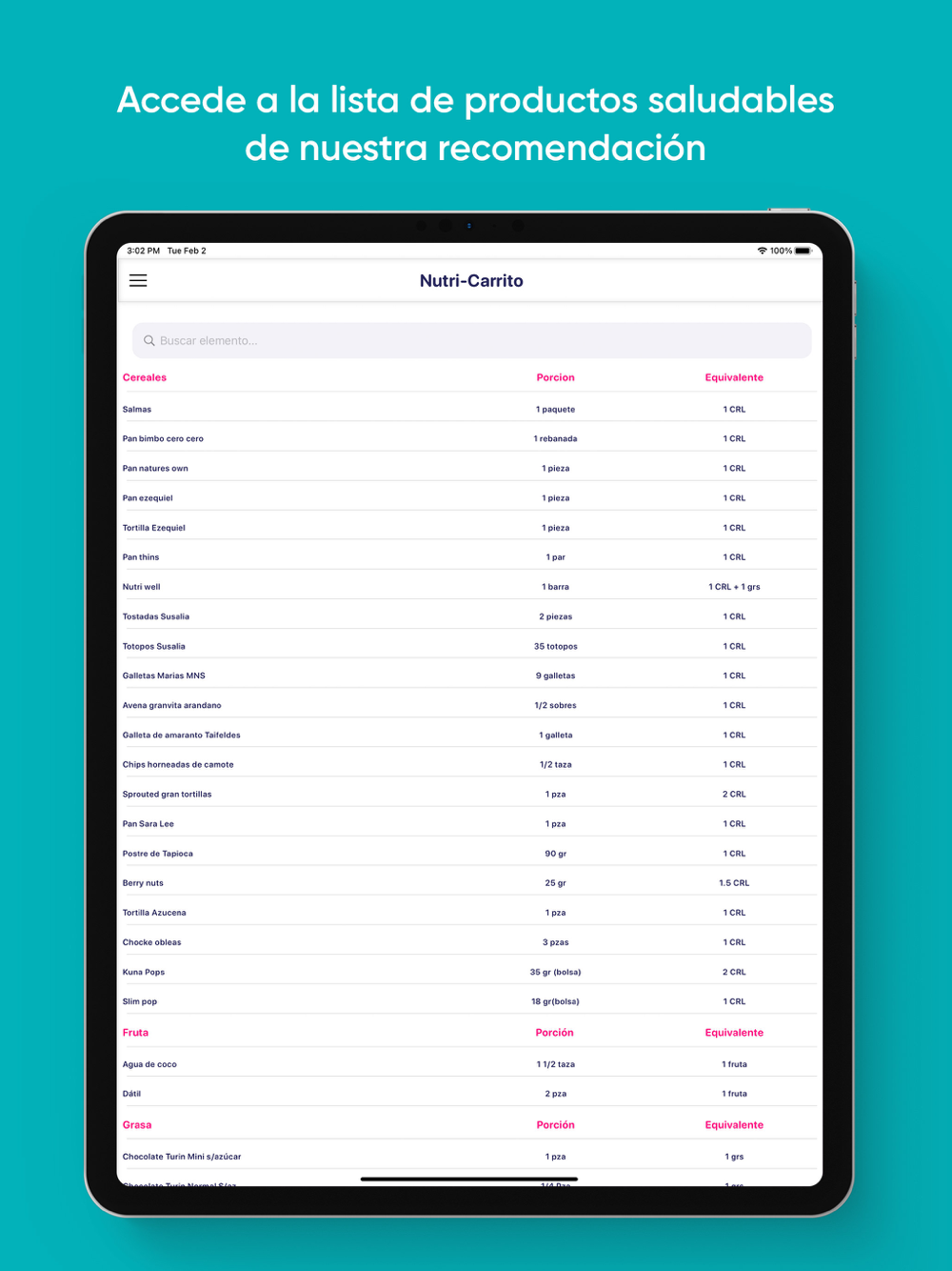 -Tabla de equivalencias para aprender a intercambiar alimentos mientras cumples con tu plan.
