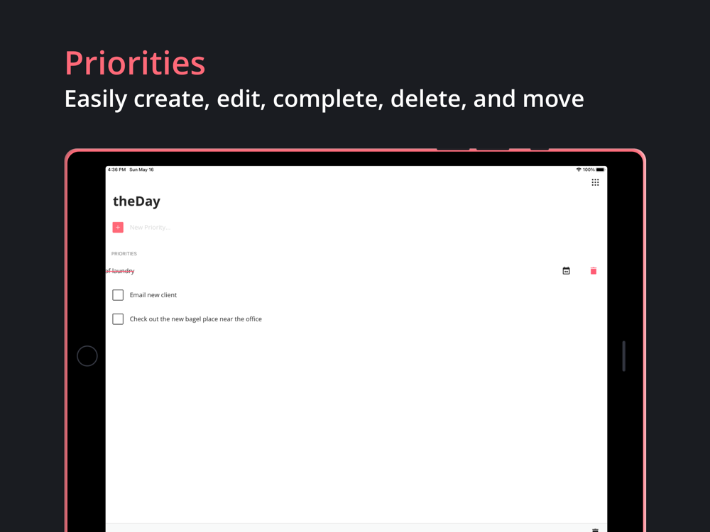 - Get daily reminders to keep you on your toes of getting priorities done!